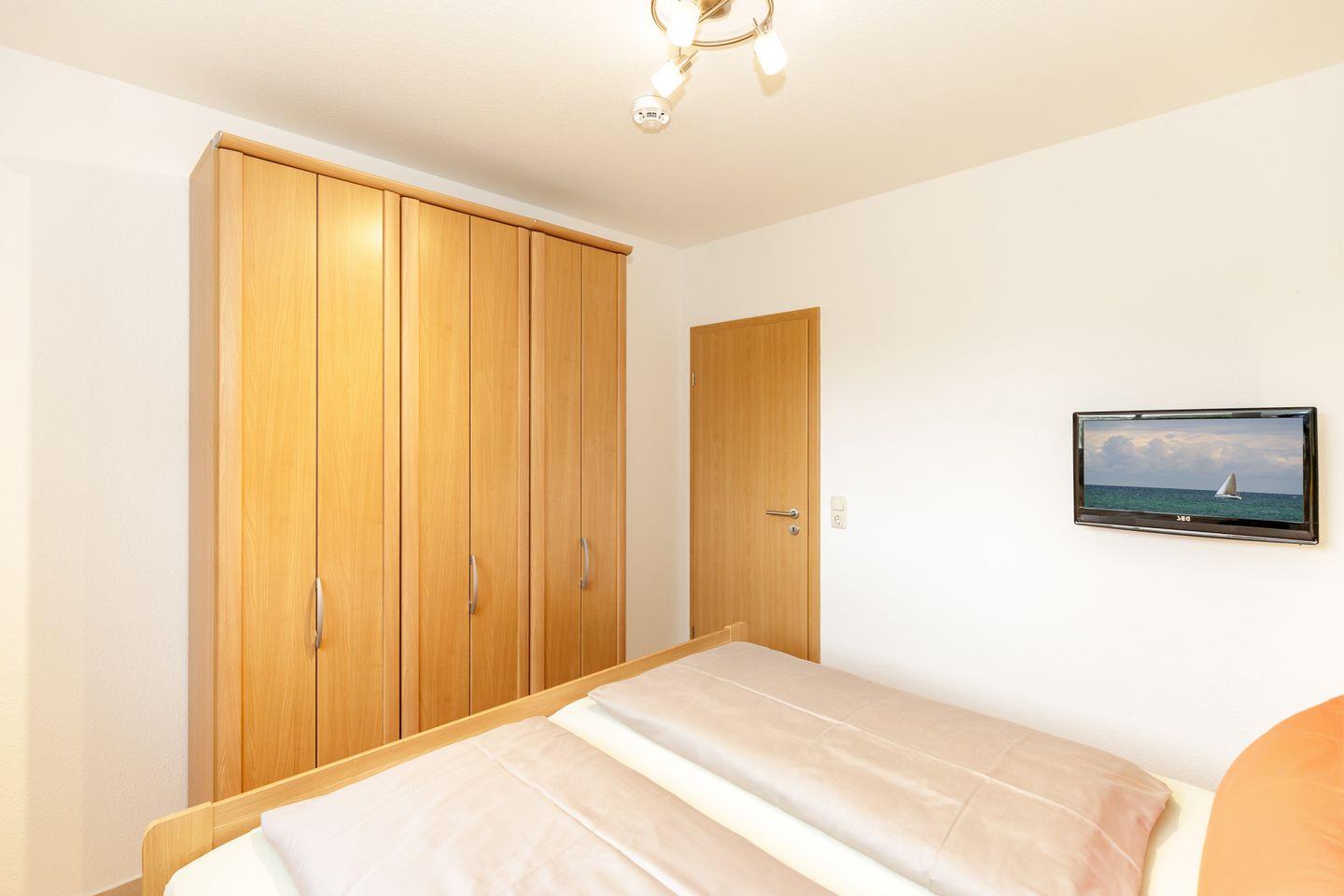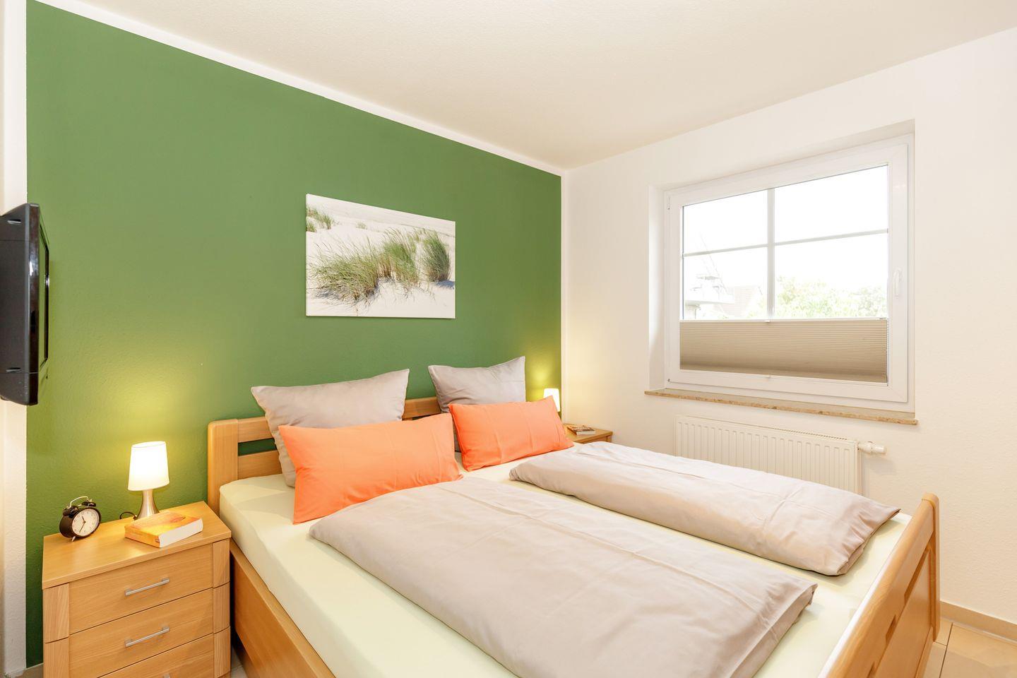 Das 1. Schlafzimmer hat ein Doppelbett, im Kinderzimmer befindet sich ein Doppelstockbett.