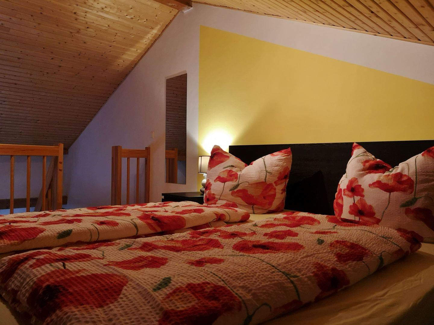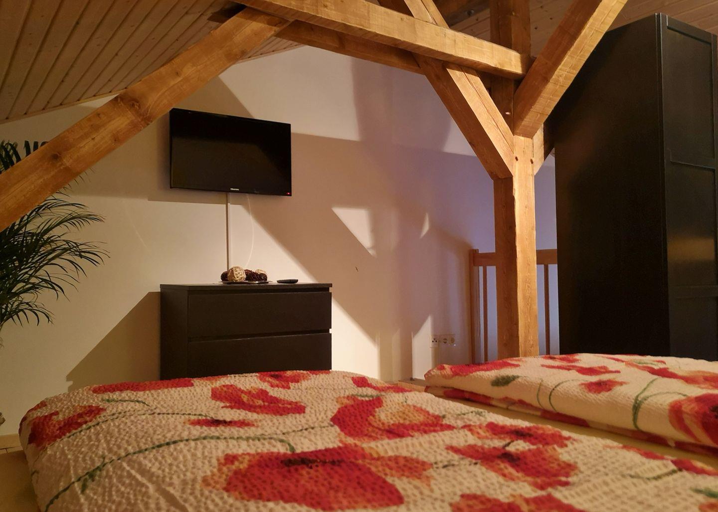 Im Erdgeschoss erwartet Sie der Wohn-Essbereich mit einer Couch und einem Flachbildfernseher, dazu eine vollausgestattete Küche und ein Bad mit Dusche. Über eine Holztreppe gelangen Sie nach oben in den gemütlichen Schlafbereich mit großem Bett (180x200), Kleiderschrank und einem 2. Fernseher.