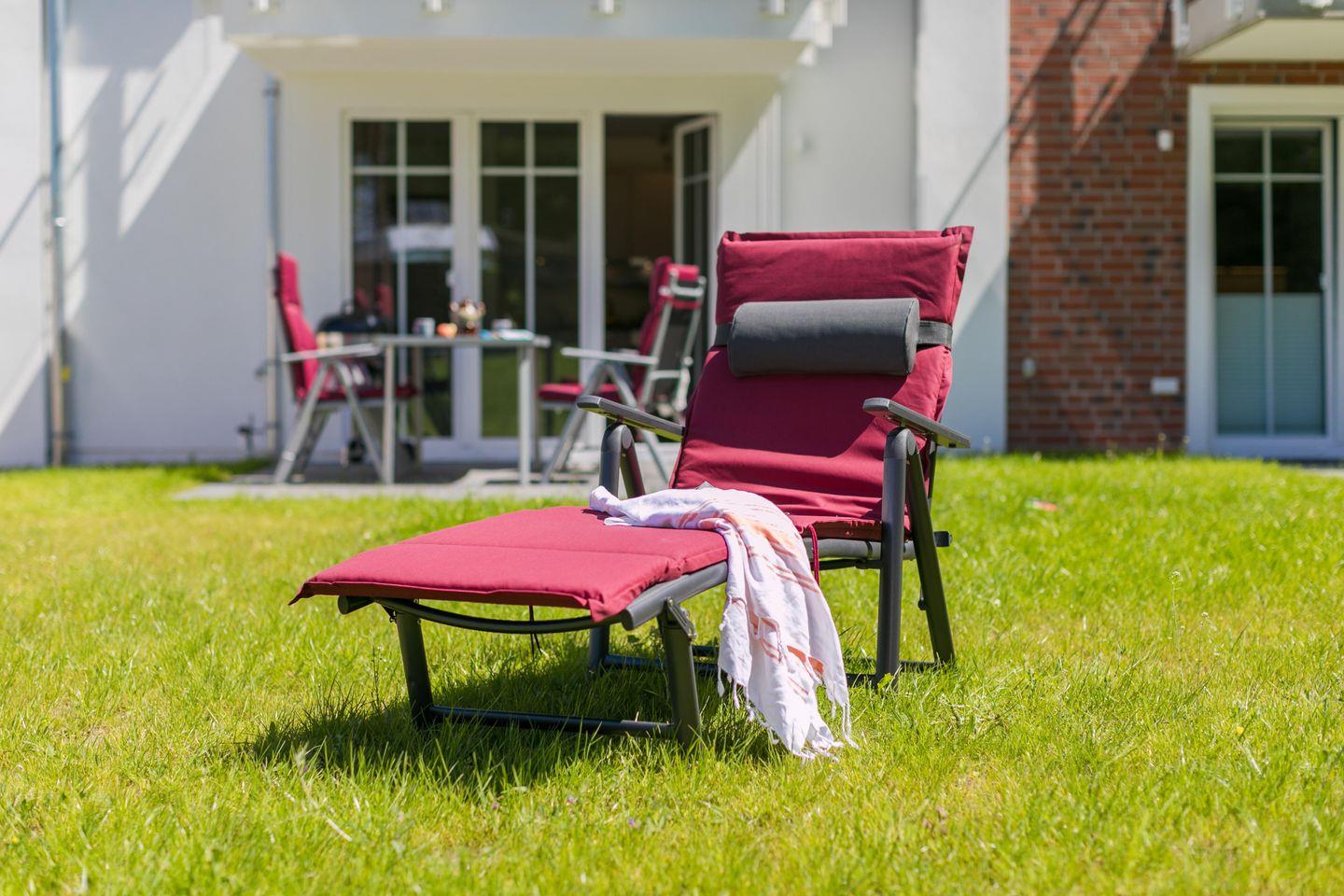 Eine der größten Attraktionen dieser Ferienwohnung ist die großzügige Terrasse, die mit Gartenmöbeln, Sonnenliegen und einem Grill ausgestattet ist. Hier können Sie die warmen Sonnentage genießen oder abends unter dem Sternenhimmel entspannen. Der Blick auf die umliegende Landschaft und den Garten sorgt für ein Gefühl der Ruhe und Abgeschiedenheit.