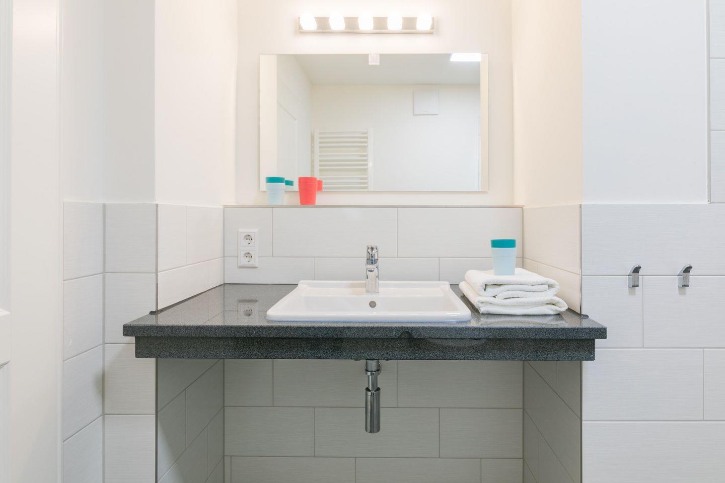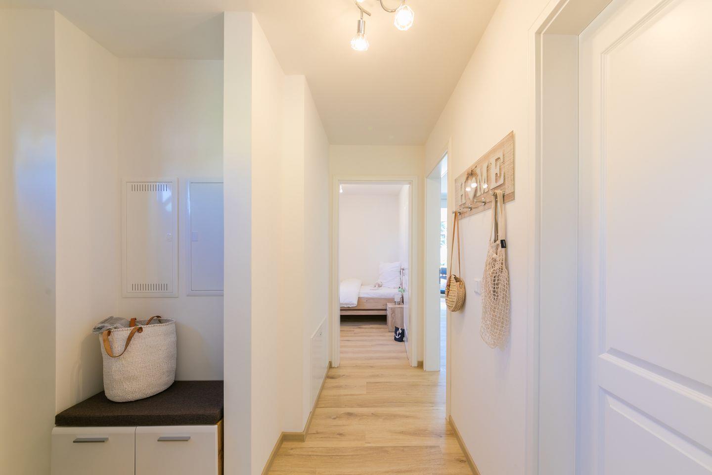 Im Badezimmer erwartet Sie eine bodengleiche Dusche, die für ein modernes Ambiente sorgt, sowie ein Haartrockner und ausreichend Stauraum für Ihre Utensilien. Eine Fußbodenheizung sorgt für angenehme Wärme, besonders an kühleren Tagen.
