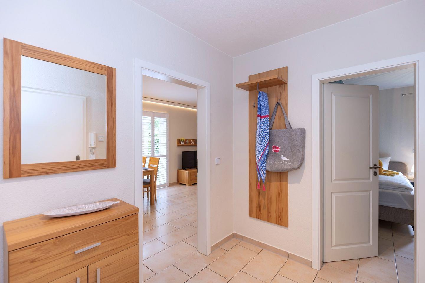 Vom Flur mit Garderobe, Spiegel und Kommode erreichen Sie bequem alle Räume Ihrer Ferienwohnung.