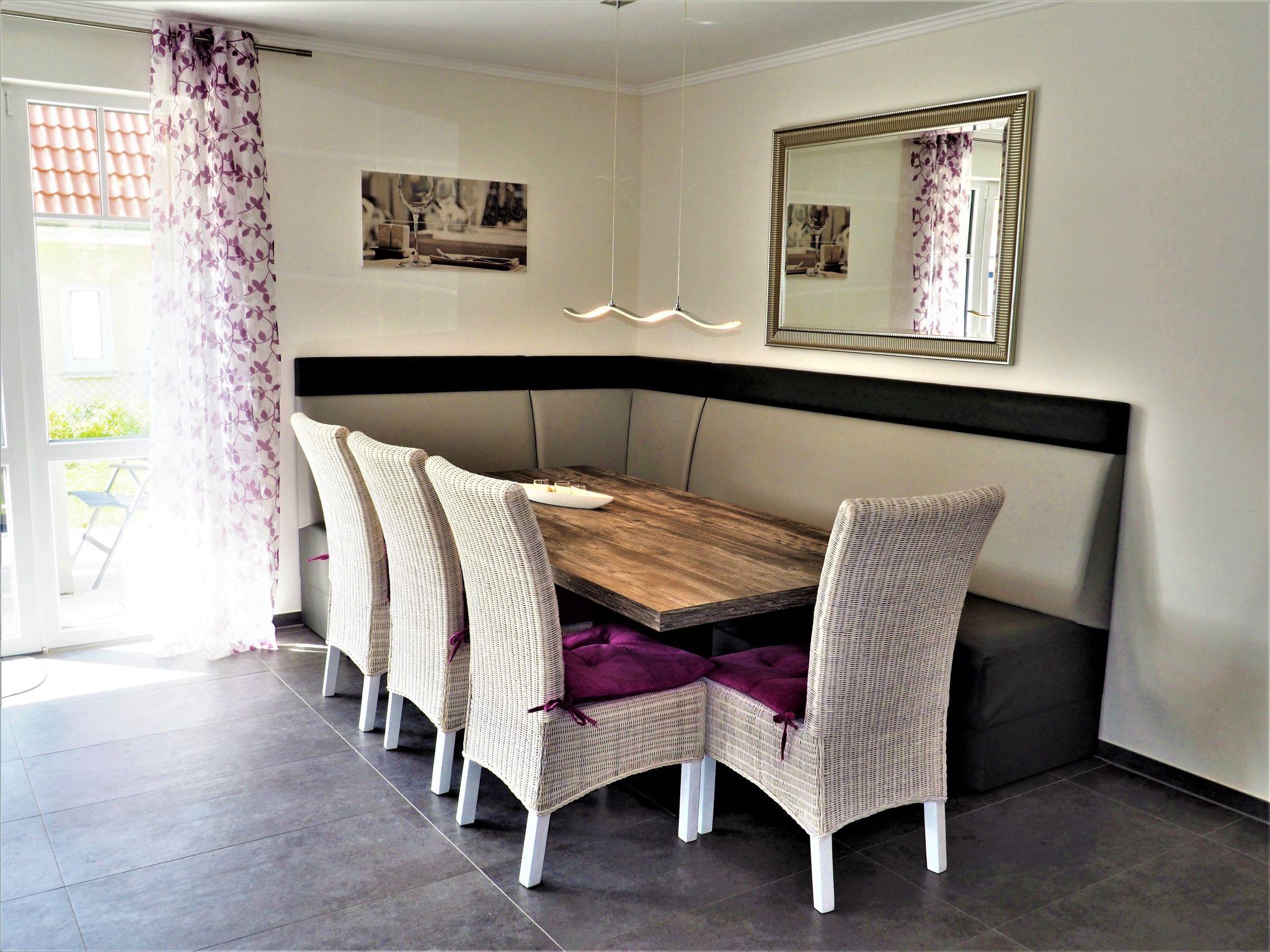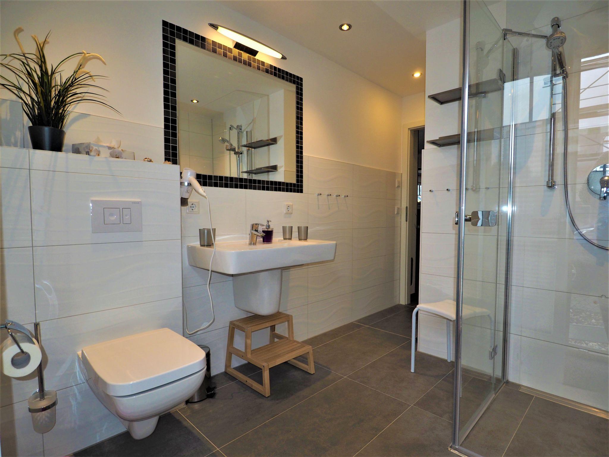 Outdoor facilities: Two parking spaces are available one behind the other, behind which an additional vehicle could be parked. If you have brought your own bikes or are hiring bikes, you can store them in a lockable bike shed and the garden is fenced (height approx. 80 cm). Terrace: The large garden table with space for eight people invites you to a cosy barbecue evening, an electric barbecue is available. An electric charging station, only for guests of the semi-detached house.