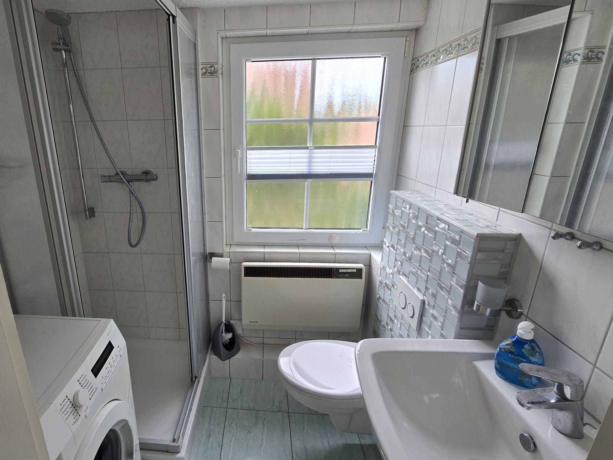 The house provides 50m² of living space for four people. It has a cosy living room with a sofa, an armchair, a coffee table, a fireplace (firewood free of charge), a CD/radio stereo system, a Full HD TV (satellite receiver) with a Blu-ray player and a dining table with chairs. The kitchen is equipped with an oven, a ceramic hob, a fridge with a freezer compartment, a dishwasher, a microwave, a toaster, a kettle, a coffee machine, and a table and chairs. The two bedrooms each have a double bed (180cm wide). The bathroom is fitted with a shower, toilet, washbasin, hairdryer and washing machine, for use free of charge. The house is laid with low-maintenance tiles and laminate. The owner can provide board games for all ages for games evenings. All the rooms in the house have heating and free wireless Internet access. There is a telephone for inland calls (no mobile calls).