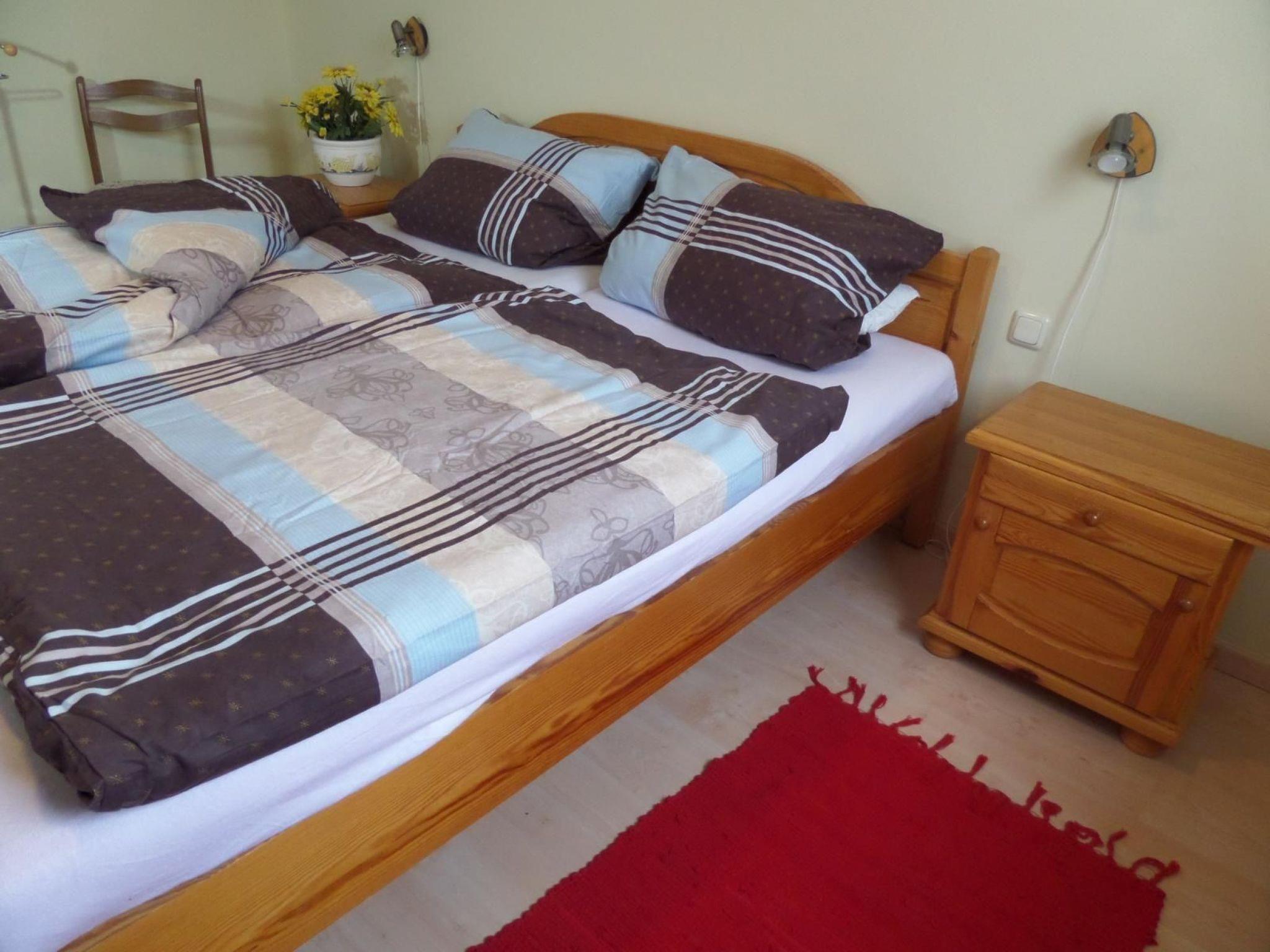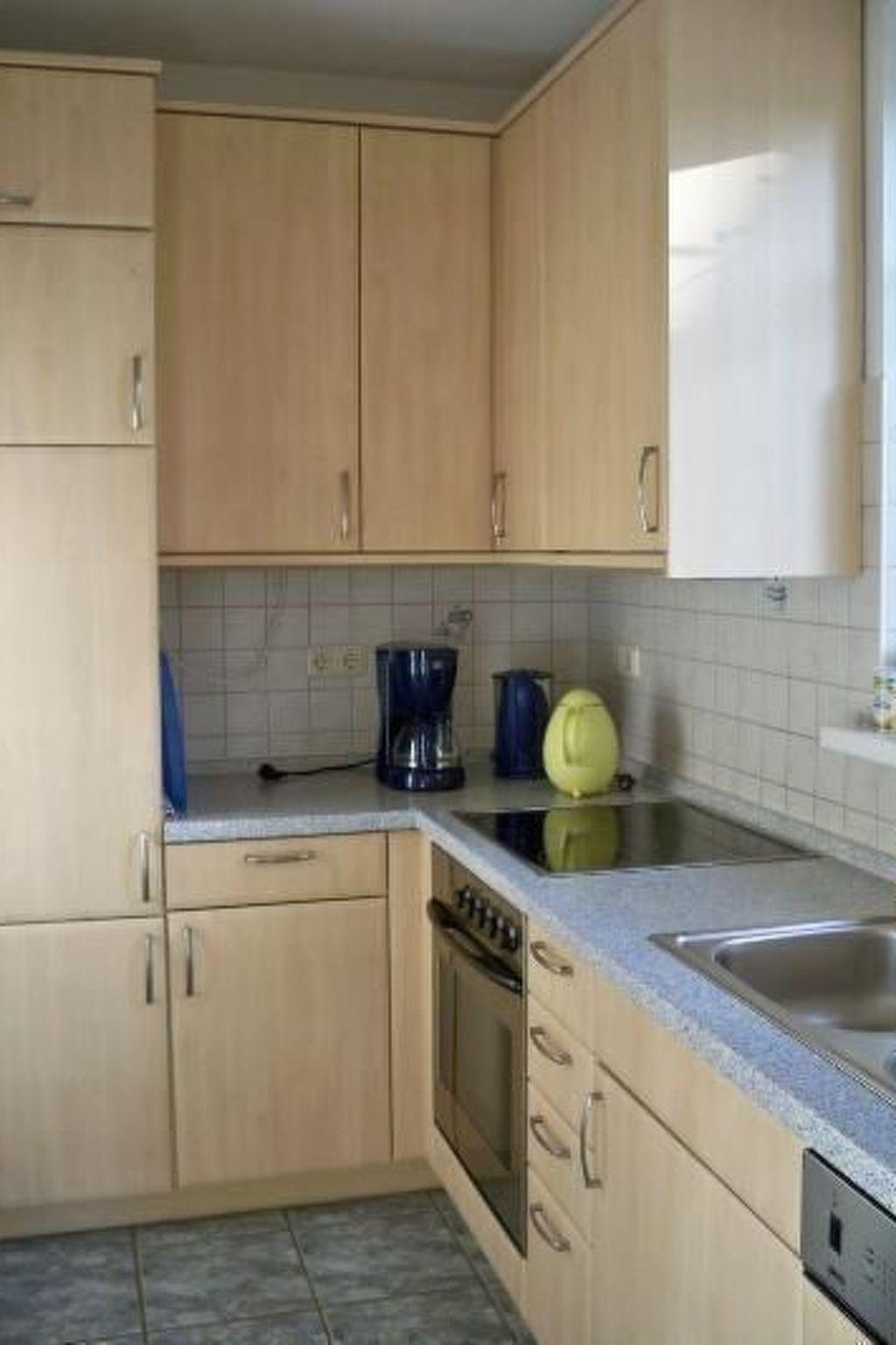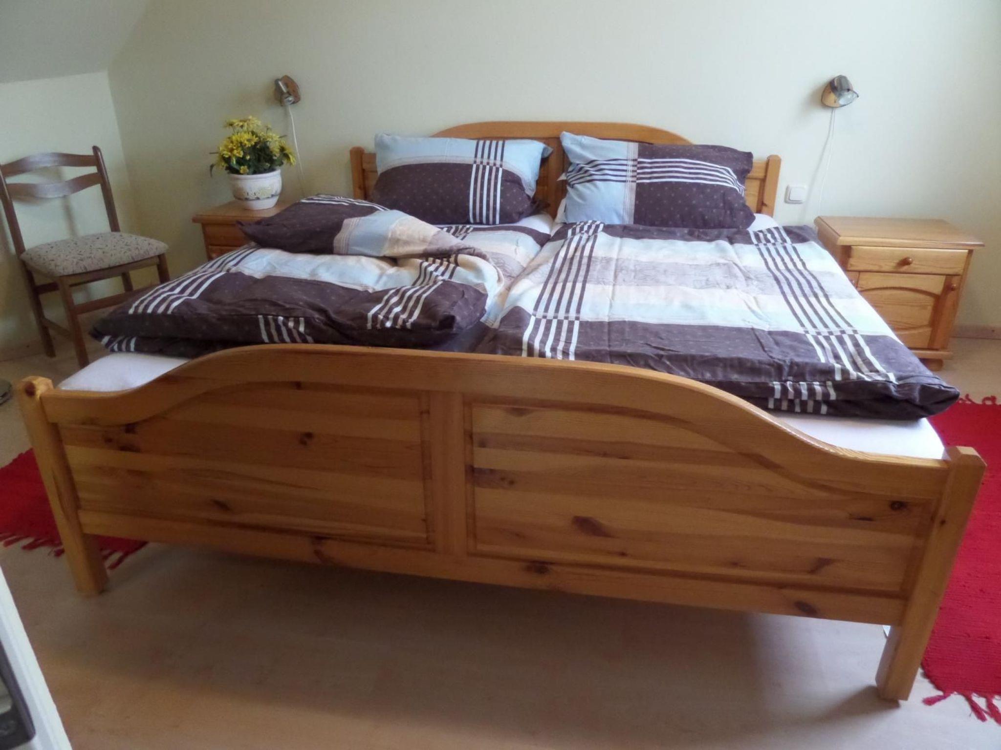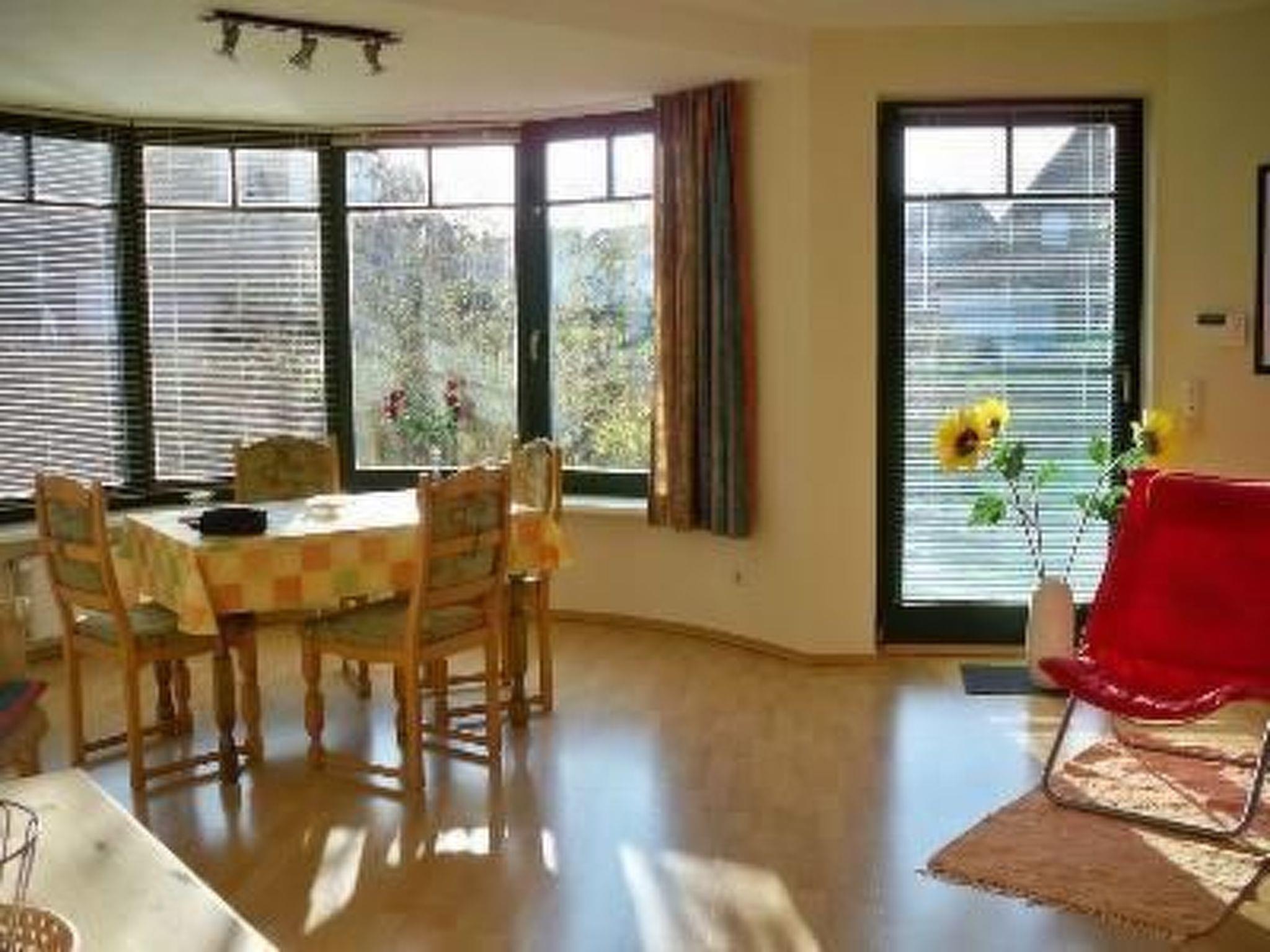 On the ground floor is the spacious living room with a very nice dining area in a semi-circle of windows, so that plenty of light delights the senses. And should it really rain, you have the space to do nothing, read or whatever you like in the seating area. A TV with satellite connection and a stereo system with CD player are also available. Of course you have WLAN connection throughout the house. The comfortable corner settee also offers you a place to sleep. Next door is the kitchen, which has a hob, oven, dishwasher, fridge with freezer compartment, microwave and coffee machine. There is also a guest WC on this floor. The two bedrooms are located on the upper floor of the house. One has a double bed (1.80 m x 2.00 m) and a wardrobe and the other has two single beds (each 0.90 m x 2.00 m) and a wardrobe. From here you have access to the balcony. You can set up the existing cot as required. On this floor there is also a large shower room with bathtub including shower, washbasin, bidet and WC. If you would like towels and bed linen for your stay, you can book these additionally.