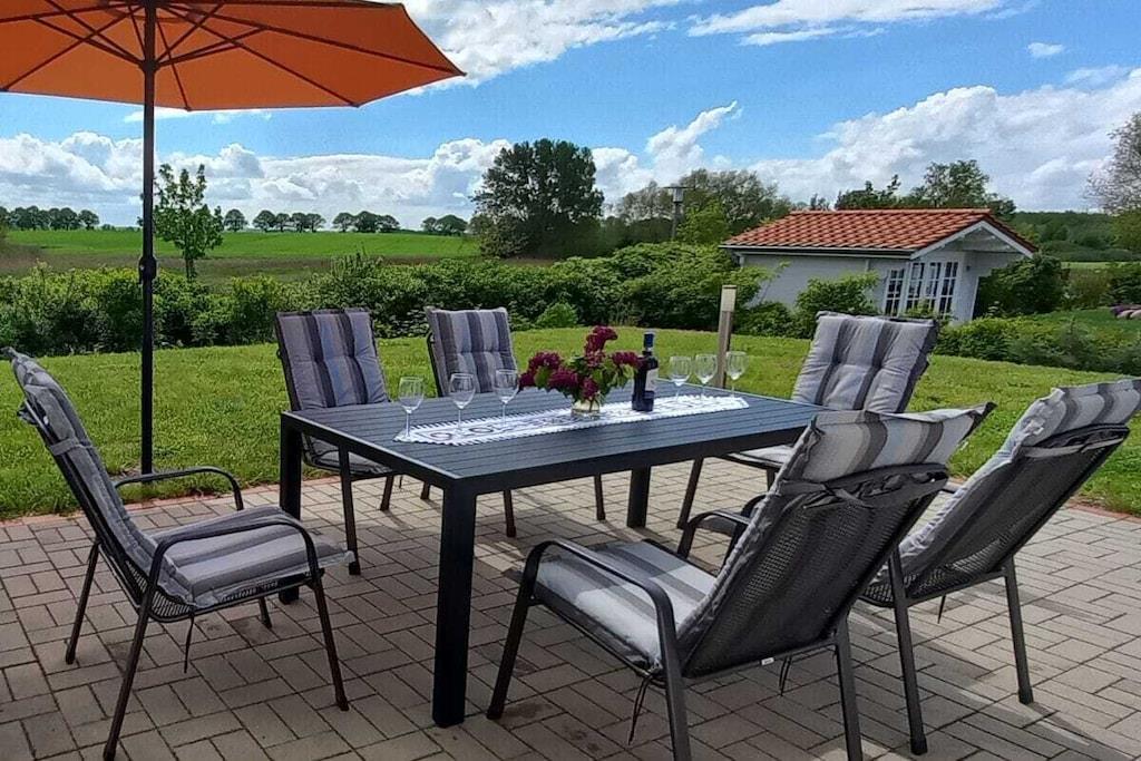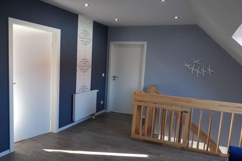 Feriehuset Meerraum blev nybygget i 2018 på en grund på ca. 870 m² og ligger i den nye feriepark ved Østersøen, Rerik, i et naturreservat, omgivet af enge, marker og skove. Østersøstranden (strandadgang Teufelsschlucht) kan nås til fods på ca. 10 minutter. Feriehuset tilbyder to separate boligenheder med individuelle indgange og private terrasser. Den lyse ferielejlighed MeerRaum 2 på ca. 100 m² ligger i stueetagen og på øverste etage og har tre soveværelser, et lyst spa-badeværelse på 20 m² på øverste etage med bruseniche, badeværelsesmøbler, væghængt toilet og to spa-liggestole. ... Lys, moderne stue/spisestue i stueetagen med åbent, eksklusivt køkken, stort udtrækkeligt spisebord, sofa og tv med adgang til to rummelige solterrasser; gæstetoilet i stueetagen; Galleri på øverste etage med en anden lys opholdsstue og komfortabel siddegruppe, lænestol og TV; Wi-Fi; bryggers med vaskemaskine; parkeringsplads; havemøbler og strandstol; have. Ferielejligheden er indrettet i moderne Østersøstil og tilbyder alt, hvad 6-7 personer har brug for til en dejlig, afslappende ferie. For større familier eller ferier med venner kan I udover MeerRaum 2 også leje MeerRaum 1 (ejendomsnummer 233128), der tilbyder 5 soveværelser og yderligere 52 m² boligareal. Spørg venligst separat om denne lejemulighed. Læg hverdagen bag dig og nyd et afslappende ophold. Din vært