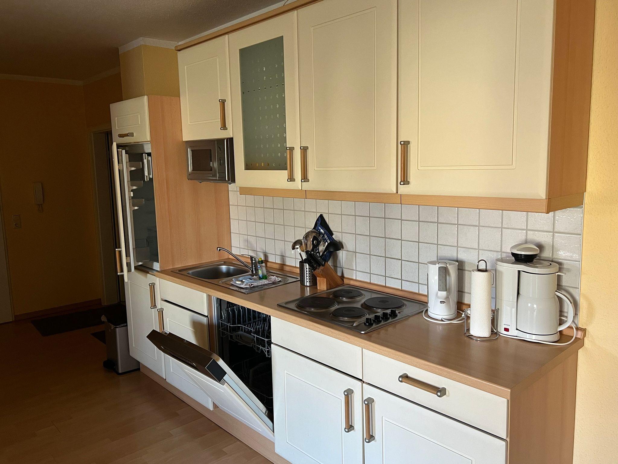 Unsere gemütliche Ferienwohnung mit Terrasse befindet sich im Erdgeschoss und hat einen großzügigen Wohn- und Essbereich für 4 Personen sowie eine Schlafcouch. ?Im Wohnbereich ist eine Küchenzeile, welche mit einem Geschirrspüler, Herd und einer Mikrowelle ausgestattet ist. Das Schlafzimmer verfügt über ein Doppelbett. Im Badezimmer befindet sich eine Dusche und WC.