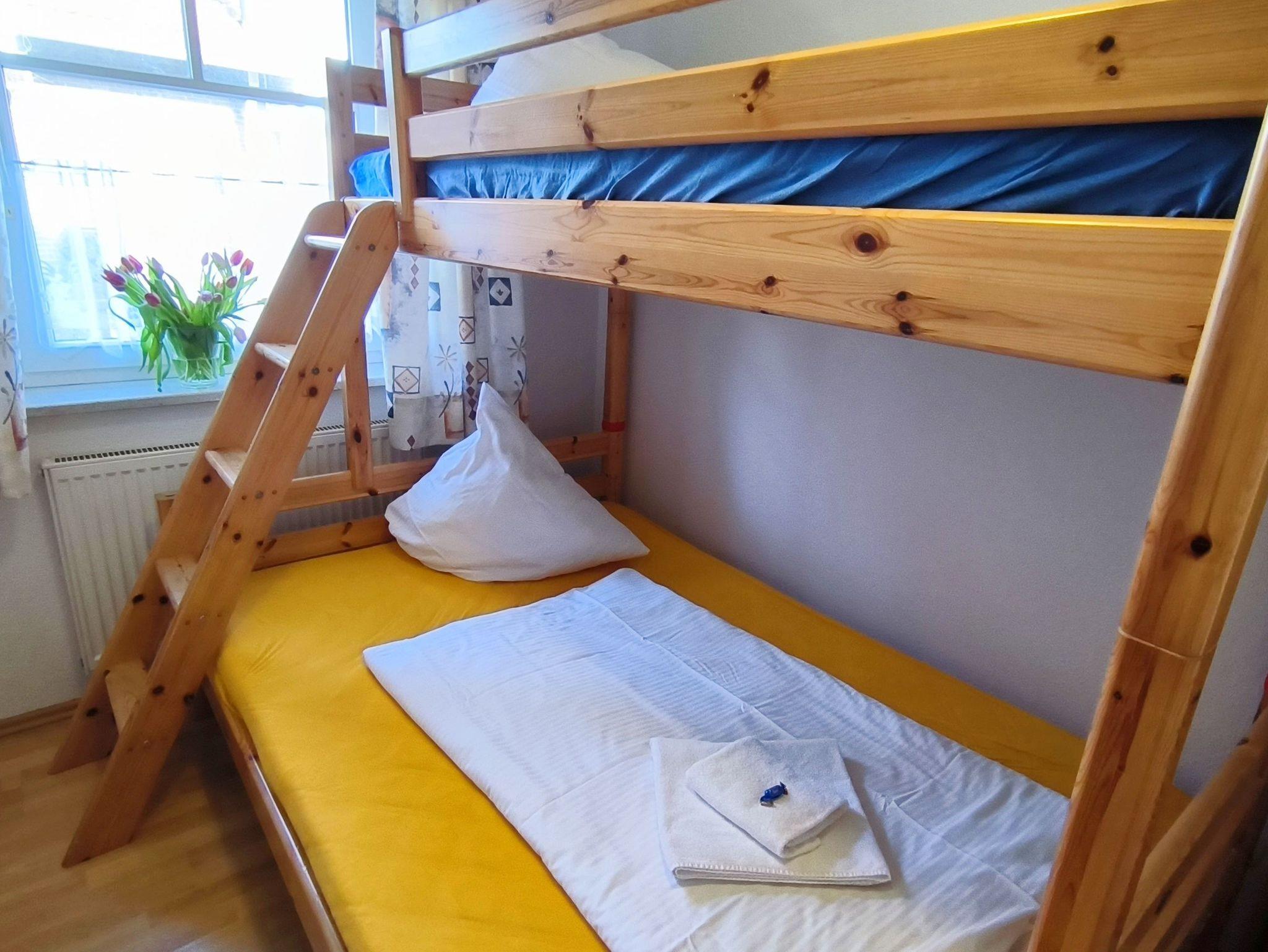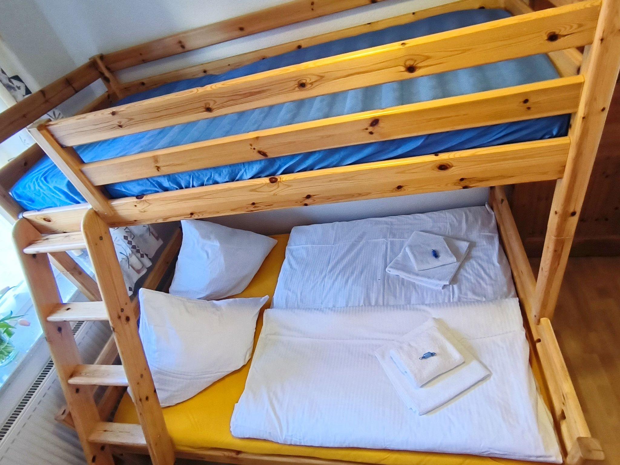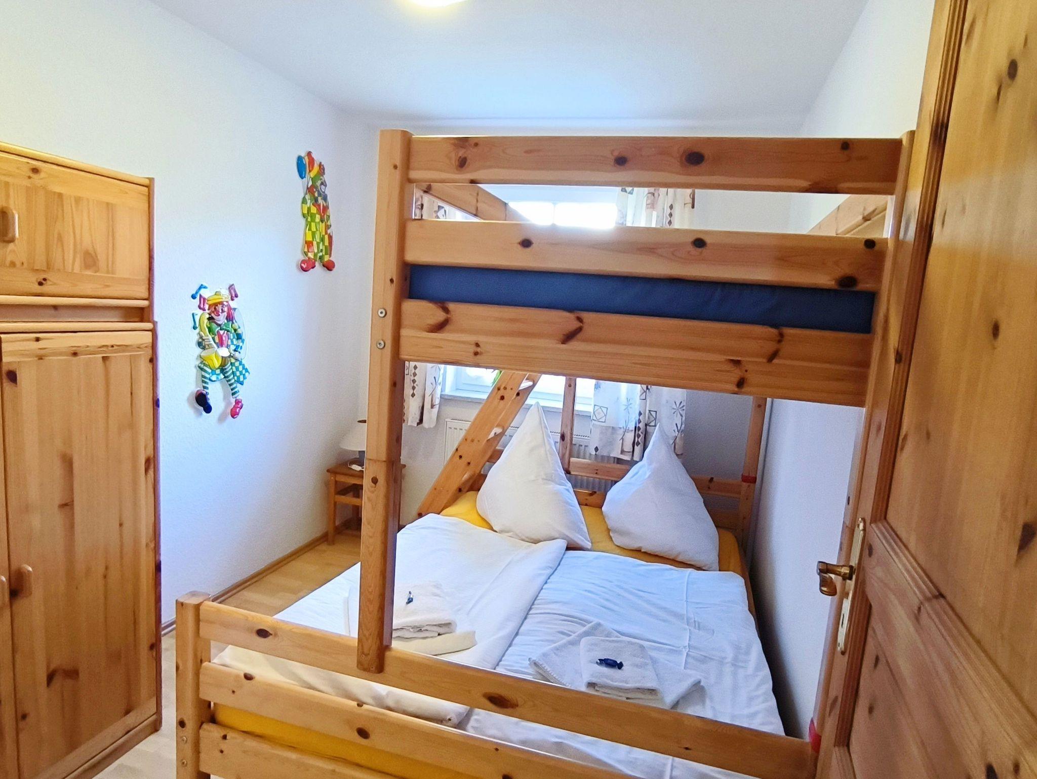 In dem Kinderzimmer werden sich die Kinder über ein Etagenbett freuen.