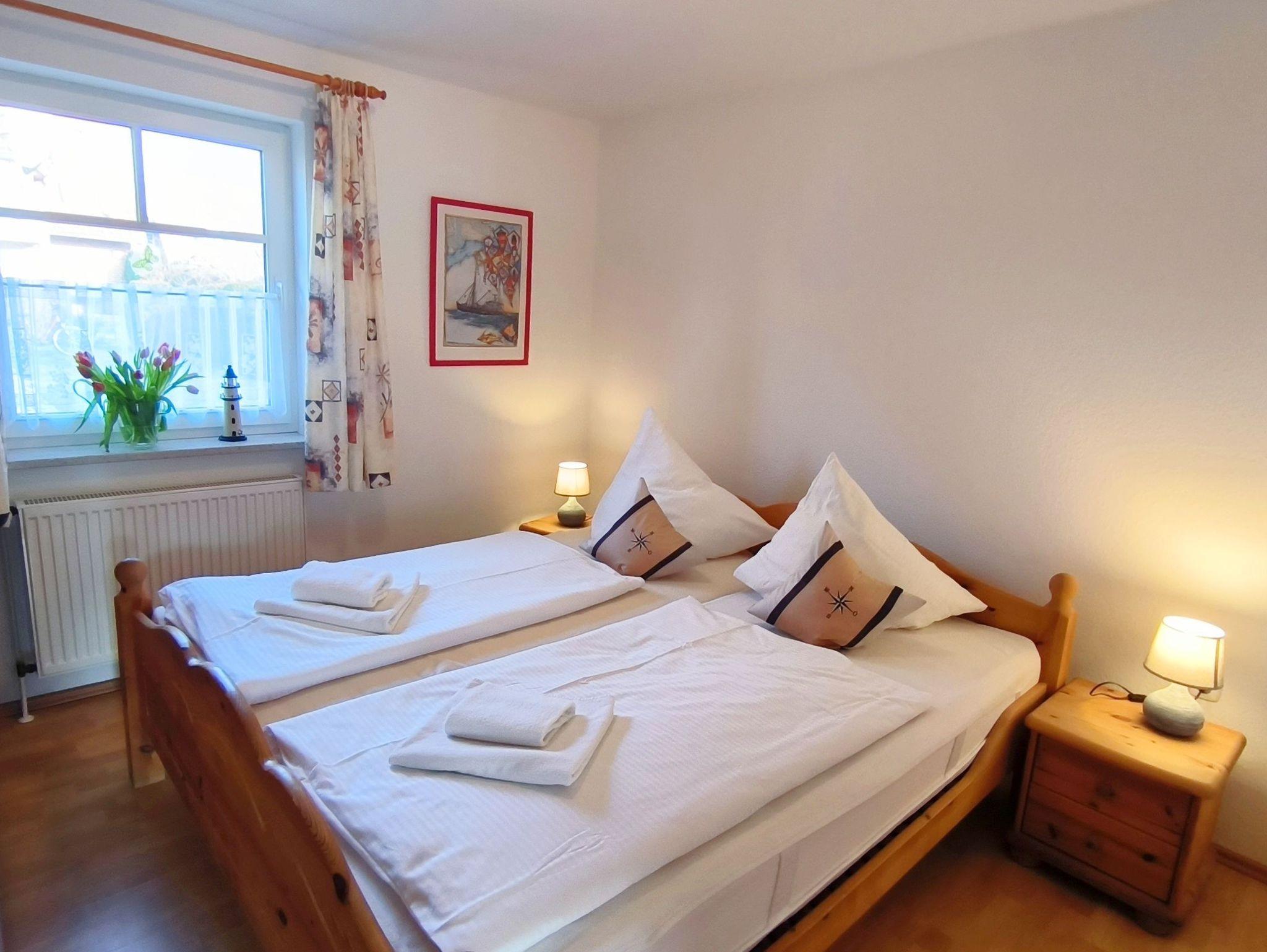 Das Schlafzimmer ist mit einem Doppelbett (1,80m x2,00m) ausgestattet.