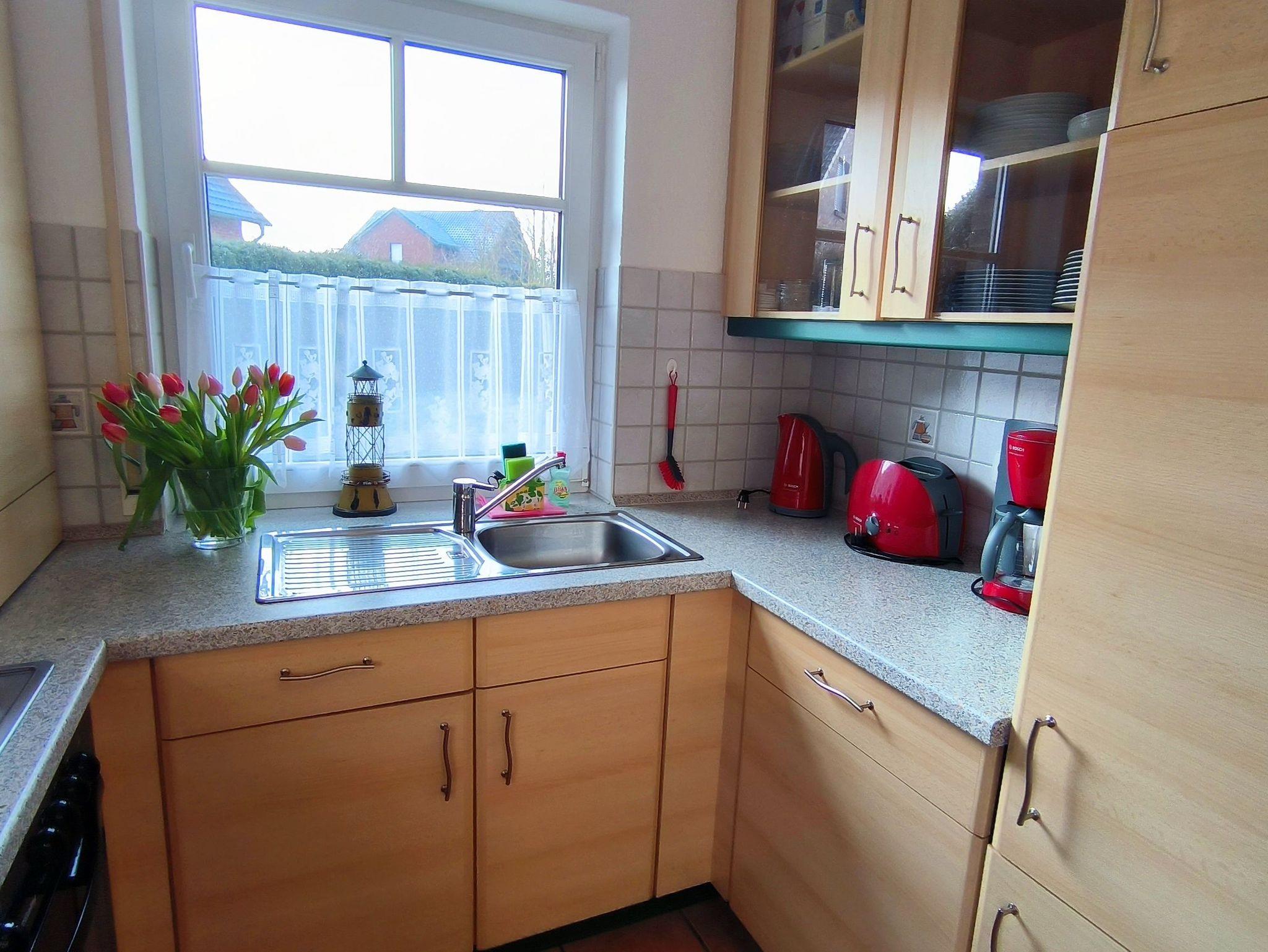 Der Wohnbereich hat eine offene Küche, die mit allem ausgestattet ist, was zum Kochen benötiget wird.
