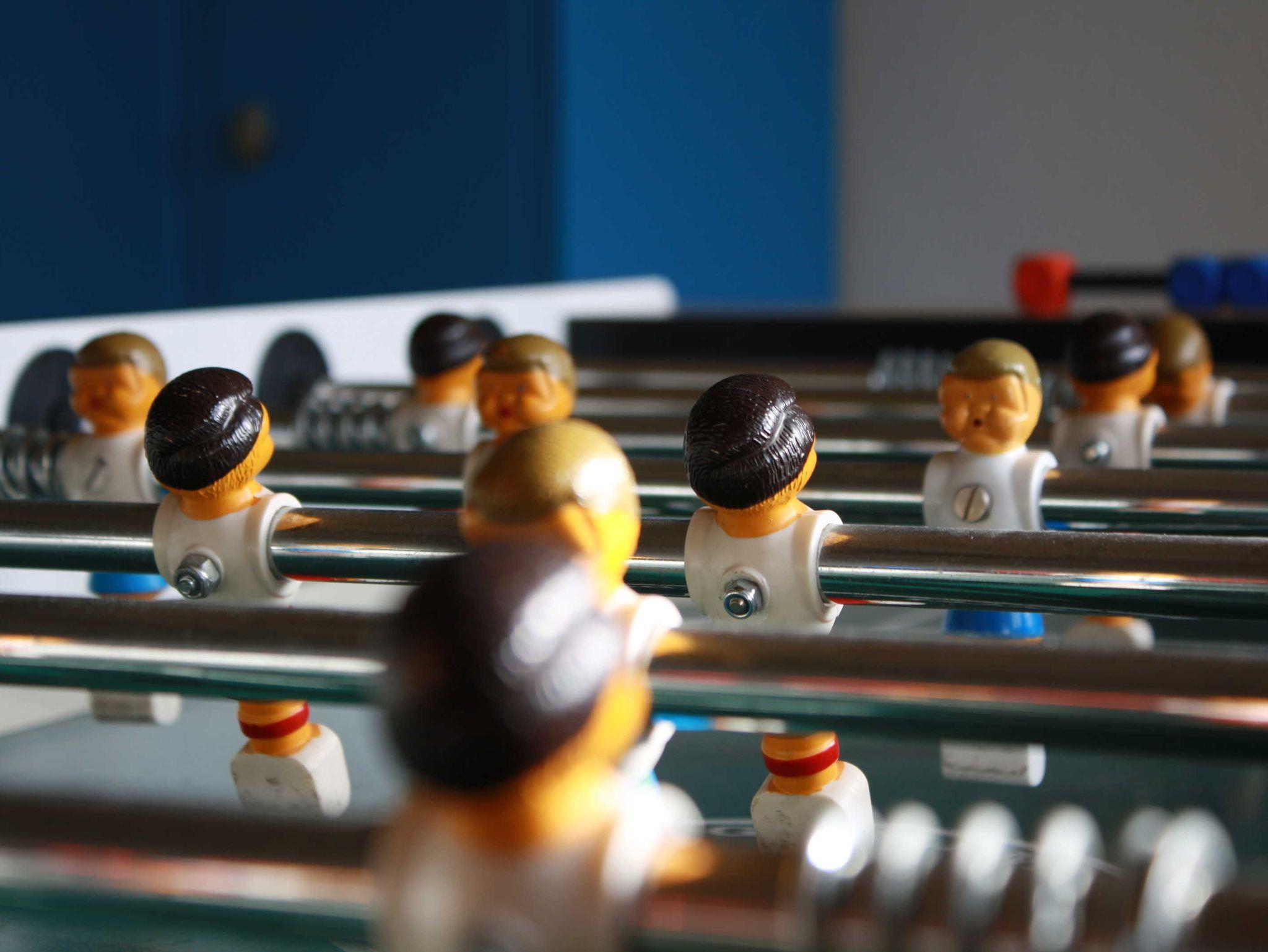 Spiele und Bücher, Tischtennisplatte, Billardtisch, Tischfußballkicker in großer Spielehalle mit genügend Platz auch für Motorräder, Fahrräder und E-Bikes.