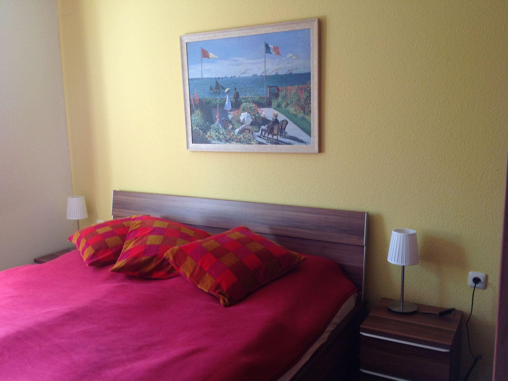 Im Schlafzimmer mit großzügigem Schrank (mit Safe) und 2 Sideboards können die Urlaubssachen und Koffer verstaut werden. Außerdem sind im Schrank auch ein Kinderhochstuhl und Kinderreisebett vorhanden. Das Doppelbett ist mit höhenverstellbaren Lattenrosten und komfortablen Matratzen ausgestattet