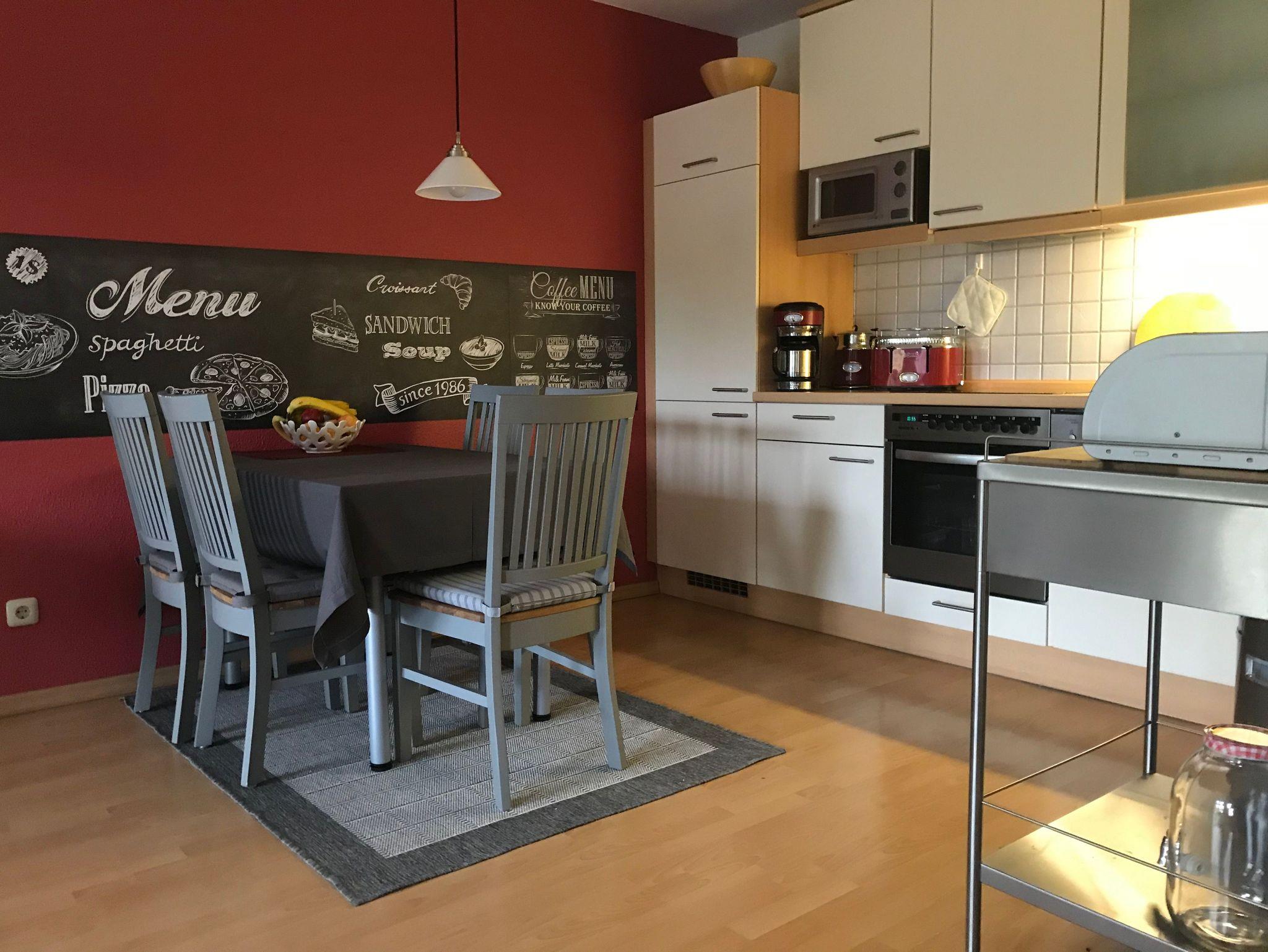 Der neue Essplatz und die neue Küchenzeile sind komfortabel eingerichtet mit Geschirr und allen Geräten (inkl. Kühlschrank, Kaffeemaschine, Wasserkocher, Mixer, Toaster, Geschirrspüler und Mikrowelle, Backofen und Herd).