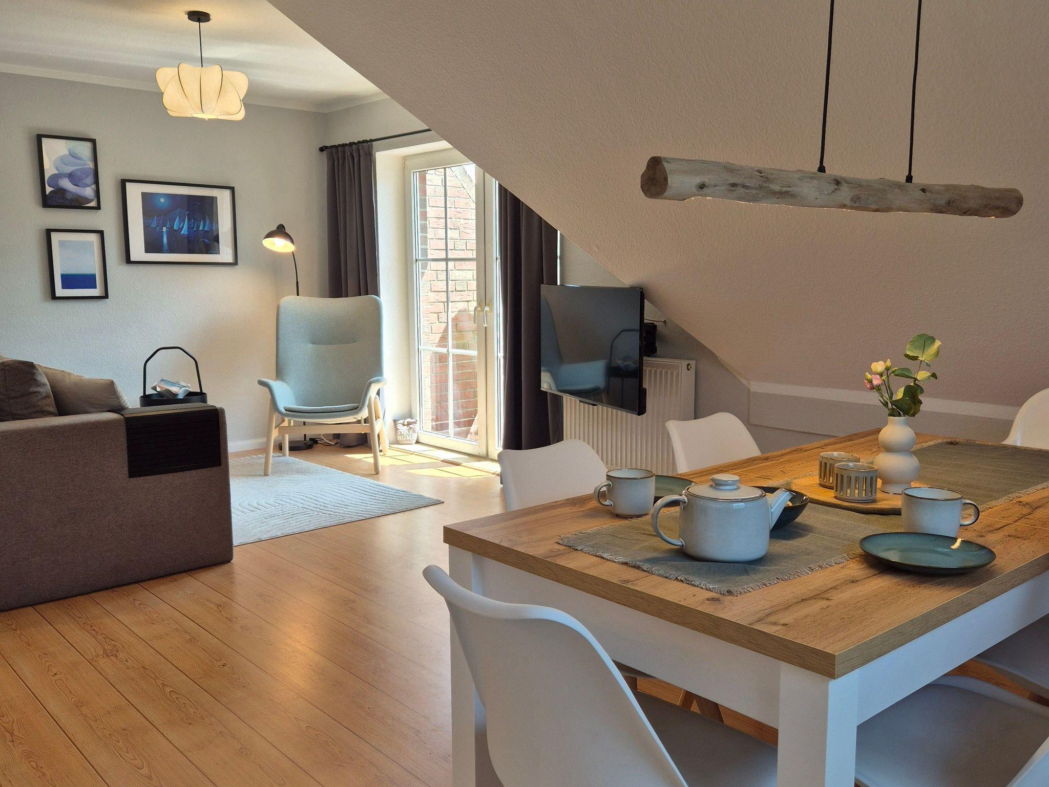 WELLENLIEBE - hier können Sie den Alltag hinter sich lassen. Genießen Sie ihren Urlaub in der hellen, im skandinavischen Design eingerichteten Maisonettewohnung, nur 250 m vom feinsandigen Ostseestrand. Klare Linien, helle, freundliche Farben und Naturmaterialien schaffen ein echtes Hygge-Gefühl. Morgens entspannen Sie beim Blick ins Grüne, einem köstlichen Kaffee auf dem sonnigen Balkon und unter der erfrischenden Regendusche. Tagsüber genießen Sie das hübsche Ostseebad Rerik, einen Spaziergang am nahegelegenen Strand, einem Getränk im Strandkorb oder den Sonnenuntergang am Meer. Und abends sinken Sie nach einem Blick in den beeindruckenden Sternenhimmel in die gemütlichen Betten und hören auf das leise Rauschen der Wellen und des Windes.