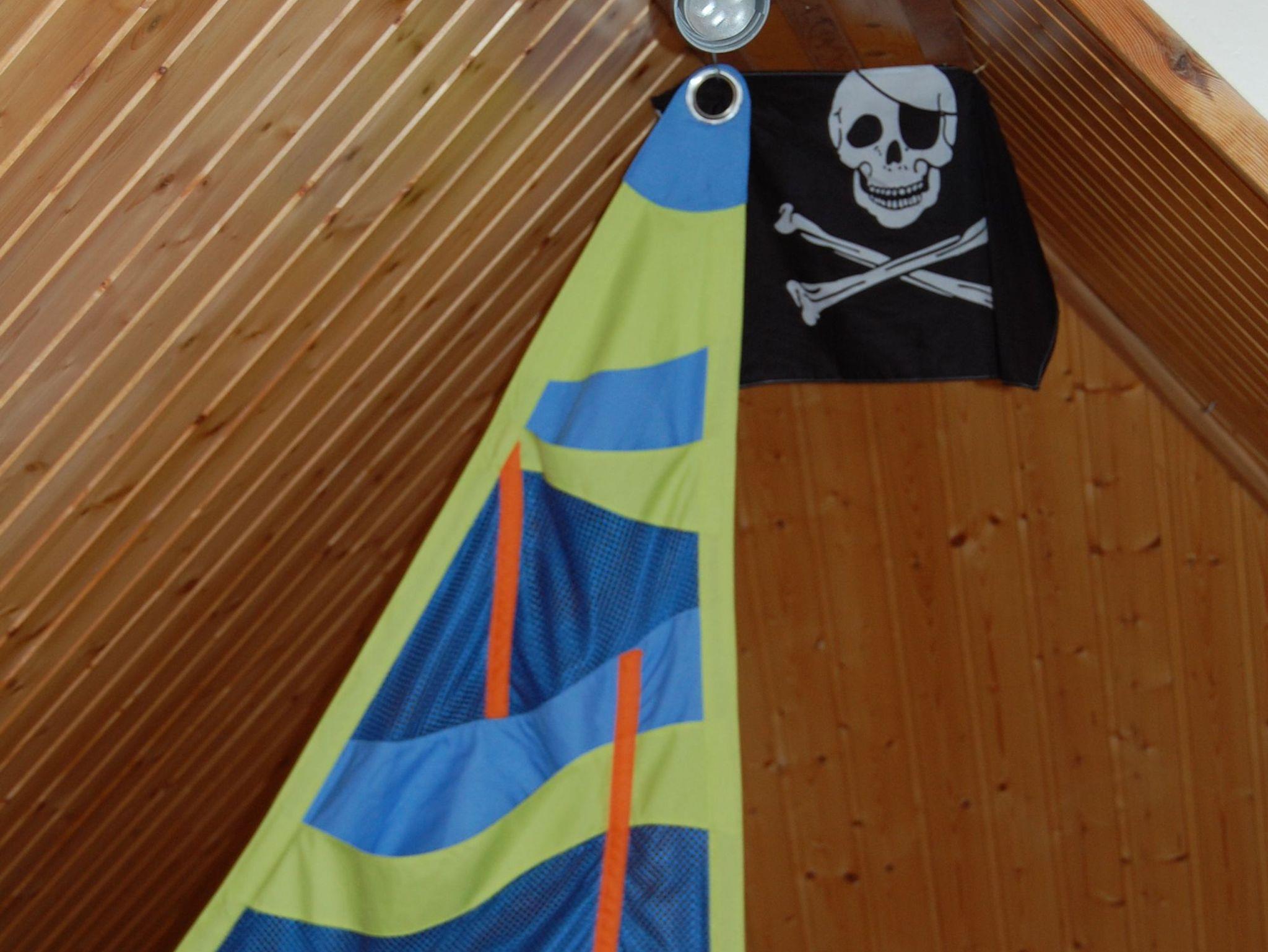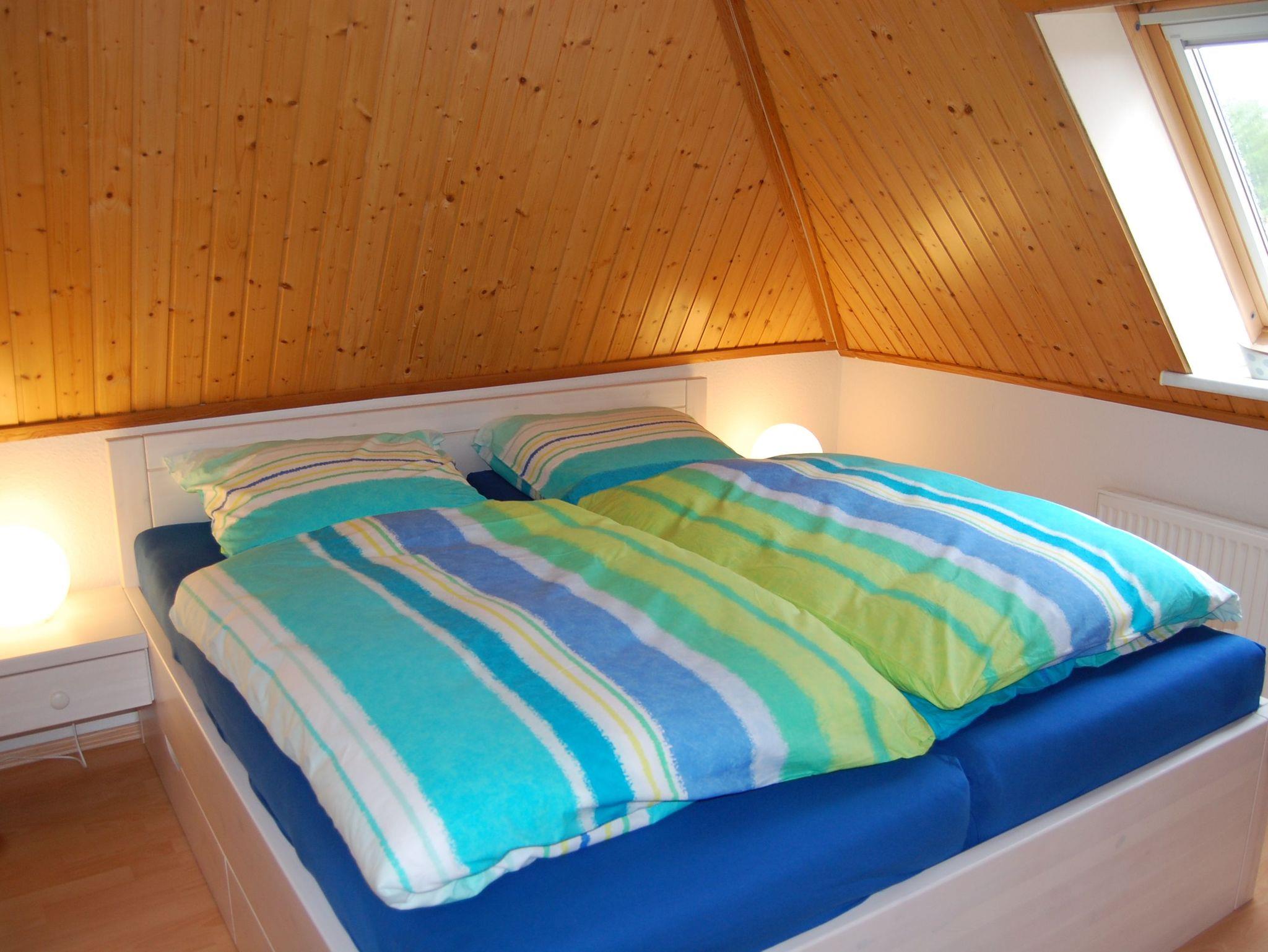 Unser, über die im Wohnzimmer befindliche Wendeltreppe erreichbares, Piratennest bietet Platz für 3 Personen in Einzelbetten - ob Groß oder Klein. Das untere Schlafzimmer verfügt über ein komfortables Doppelbett mit höhenverstellbaren Kopf- und Fussteilen in den Lattenrosten.