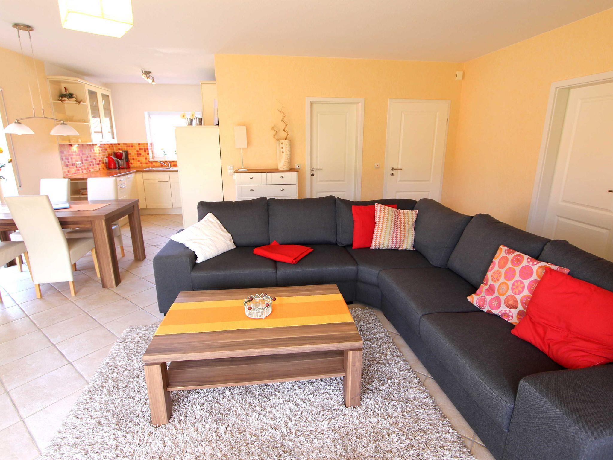 Im sonnendurchfluteten Wohnzimmer finden Sie eine gemütliche Couchecke mit direktem Blick in den gepflegten Garten. Radio und Sat-TV gehören natürlich zur Grundausstattung.