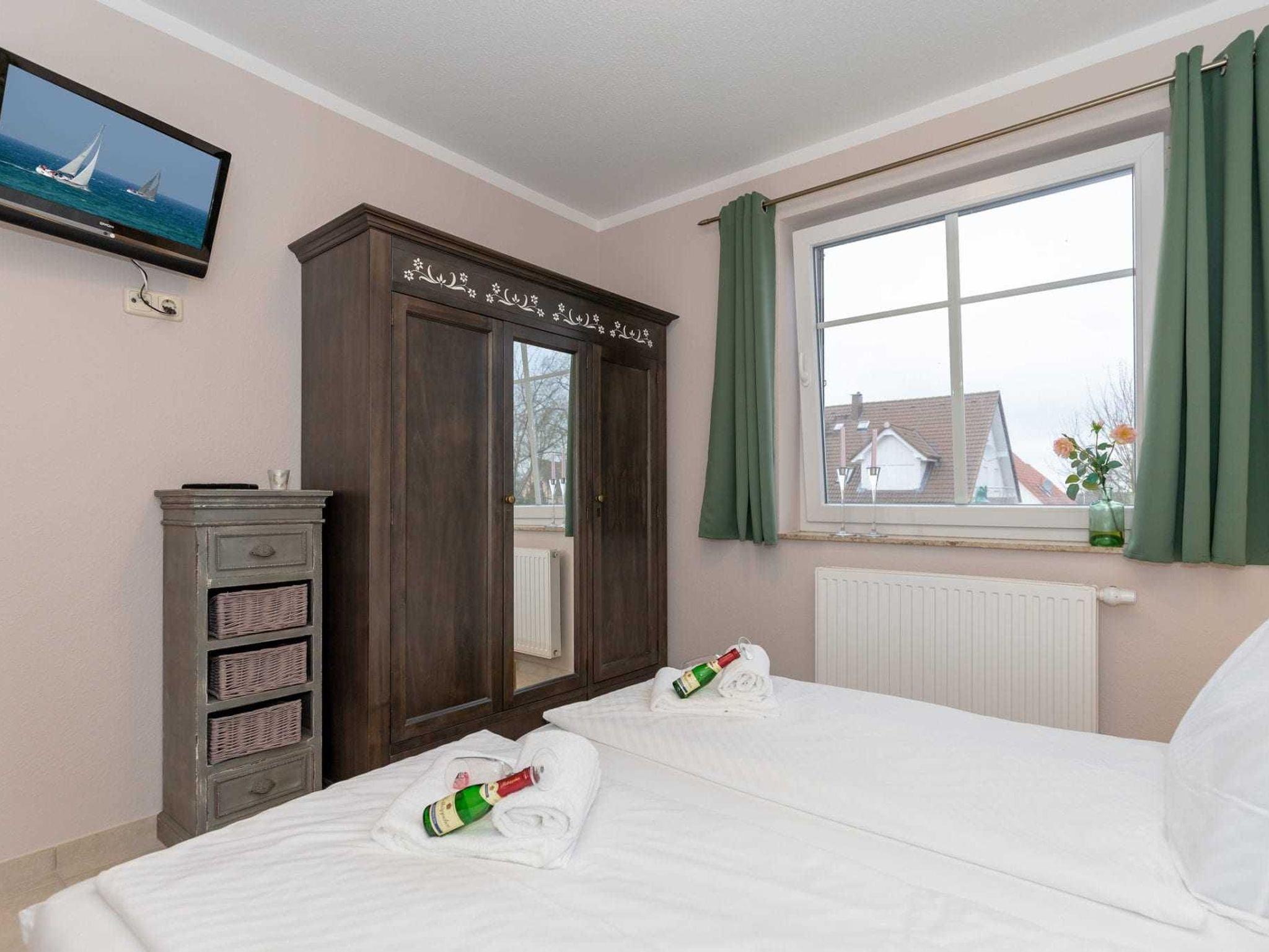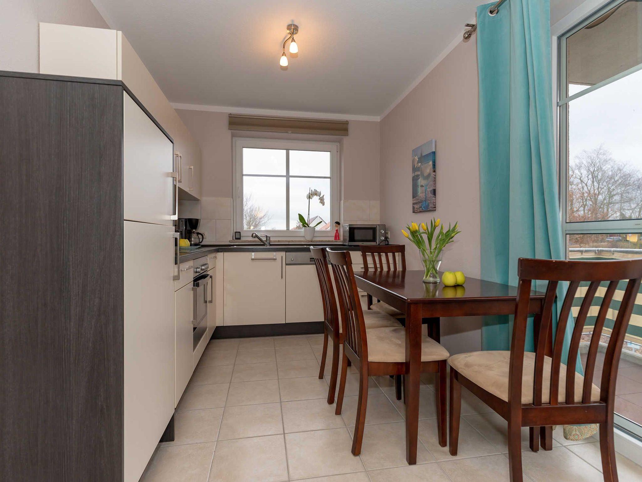 Die neu renovierte Ferienwohnung Wellenreiter lädt Sie ein, Ihre Zeit zu genießen. Bei gutem Wetter beginnen Sie Ihren Tag auf dem sonnigen Balkon mit Markise. Die Wohnung ist strandnah gelegen und für maximal 4 Personen plus Baby. Sie erreichen den Strandzugang, die Teufelsschlucht in ca. 3 min. Es gibt 2 Schlafräume und eine komplette Babyausstattung. In einem der Schlafzimmer befindet sich ein Doppelbett (180 x 200 cm) und in dem anderen zwei Einzelbetten (90 x 200 cm). Das helle, moderne Wohnzimmer mit offener, voll ausgestatteter Einbauküche bietet Ihnen die perfekte Möglichkeit Ihren Urlaub auch bei kälteren Temperaturen zu genießen. Die Ferienwohnung befindet sich in einem ruhigen Wohngebiet und einem großen Spielplatz. Von dort aus ist alles fußläufig erreichbar. Der Strand, Supermarkt, Bäcker, Restaurants und Fahrradverleihe sind nur wenige Gehminuten entfernt. Ebenso ist es nicht weit zum Busbahnhof und zum Hafen am Salzhaff.