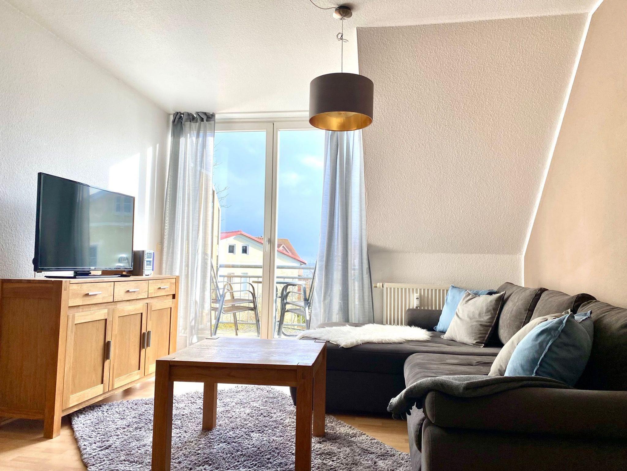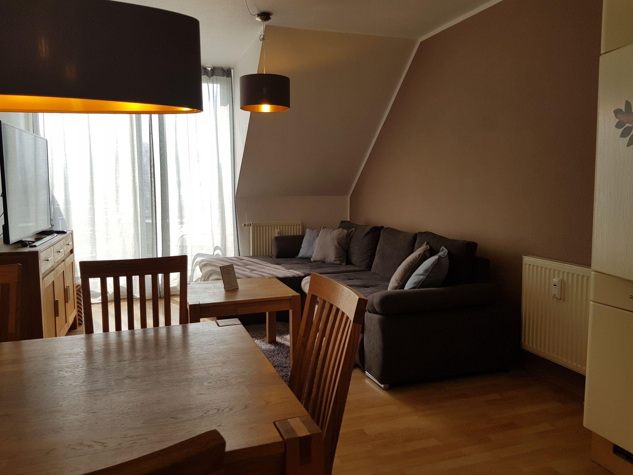In direkter Strandnähe gelegene Maisonette-Wohnung im Seitenflügel des Kurhauses mit Südbalkon zum Salzhaff hin. Die Schlafzimmer befinden sich in der oberen Etage, das Wohnzimmer, die gut ausgestatteter Küche sowie das Badezimmer befinden sich in der ersten Etage. Das Schwimmbad und die Sauna sind im gleichen Gebäude gelegen und können also auch bei Schietwetter trocken erreicht werden.