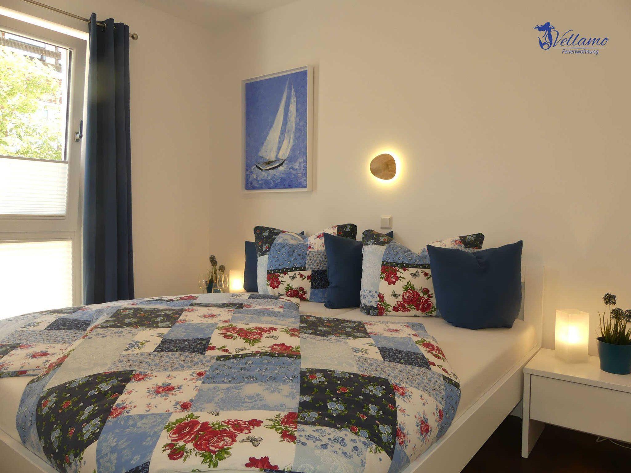 Die Ferienwohnung Vellamo bietet modernsten Ansprüchen Raum. Sie hat einen großzügigen Wohn-Essbereich mit voll ausgestatteter Einbauküche. Unseren Gästen stehen 2 Schlafzimmer zur Verfügung. Im 1. SZ steht ein Doppelbett mit einer Liegefläche von 180 x200 cm. Im 2. SZ finden Sie ein Familienbett mit einer Breite von 270 cm , welches 3 Personen ausreichend Platz bietet. Das Bad ist ausgestattet mit Dusche, Badewanne und einer Waschmaschine für die Wäsche zwischendurch. Kostenloses WLAN steht zur Verfügung. Zur Wohnung gehört ein extrabreiter Stellplatz mit Ladestation. Unsere Gäste laden ihr Elektroauto hier kostenfrei.