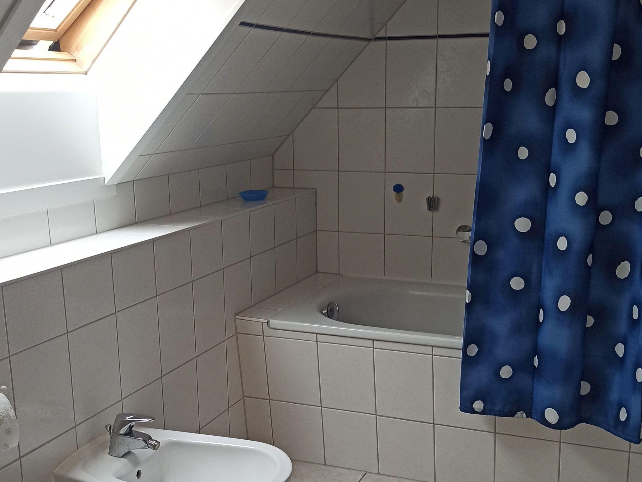 Im Obergeschoss des Hauses befinden sich die beiden Schlafzimmer. Diese verfügen einmal über ein Doppelbett (1,80 m x 2,00 m) und zum anderen über zwei Einzelbetten (je 0,90 m x 2,00 m) sowie je einen Kleiderschrank. Von hier haben Sie Zugang zum Balkon. Das vorhandene Kinderbett stellen Sie je nach Wunsch auf. Auf dieser Etage steht Ihnen darüber hinaus ein großes Duschbad mit Badewanne, Waschbecken, Bidet und WC zur Verfügung. Wünschen Sie Handtücher und Bettwäsche für Ihren Aufenthalt, so können Sie diese zusätzlich buchen.