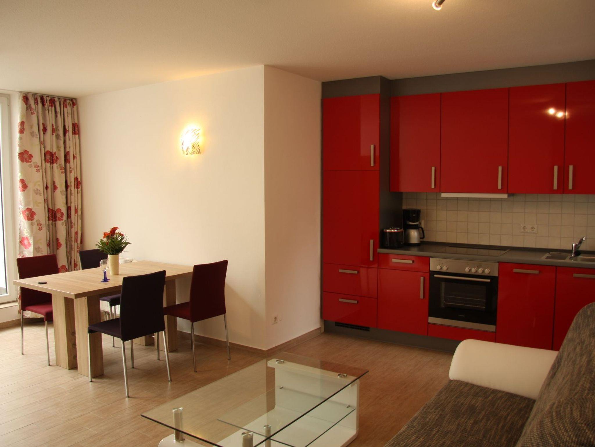 Die in 2014 neu gestaltete, 55 qm große Souterrain-Wohnung verfügt über zwei getrennte Schlafzimmer und eignet sich deshalb sowohl für Familien, als auch für zwei Paare: ein Zimmer mit Doppelbett und ein weiteres mit zwei Einzelbetten, die zusammen gestellt werden können, einem Badezimmer, einem hellen offenen Wohn- und Essbereich mit Zugang zur Terrasse und einer modernen, komplett ausgestatteten Küche. Die Ferienwohnung ist sehr komfortabel mit Waschmaschine, Geschirrspülmaschine, Parkett und Fußbodenheizung ausgestattet, ein Auto-Stellplatz ist vorhanden.