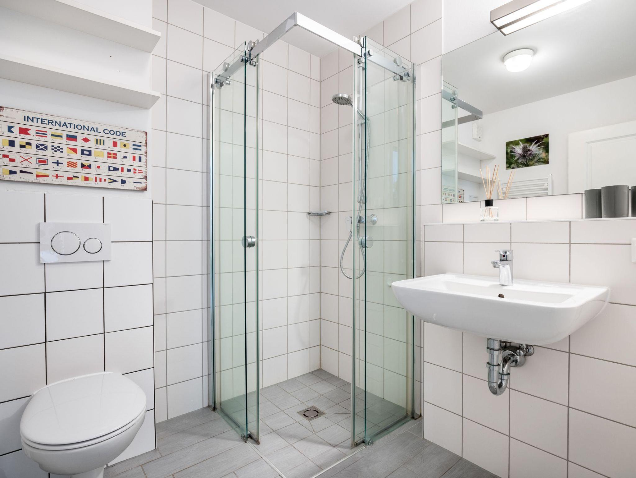 Aus dem Flur gelangen Sie in den sonnigen Wohn- Essbereich mit Couchecke, Flachbild TV, CD- Anlage, und DVD Player. Die Küchenzeile ist mit Geschirrspüler, 4- Platten- Herd, Mikrowelle mit Grillfunktion, Wasserkocher, Kaffeemaschine, Kühlschrank mit Gefrierfach umfangreich ausgestattet. Im ersten Schlafzimmer befindet sich ein Doppelbett (1,60 x 2,00m) und Kleiderschrank, das zweite Schlafzimmer ist mit einem Doppelbett (1,40 x 2,00m mit durchgehender Matratze) ausgestattet. Das Bad verfügt über eine ebenerdige Dusche.