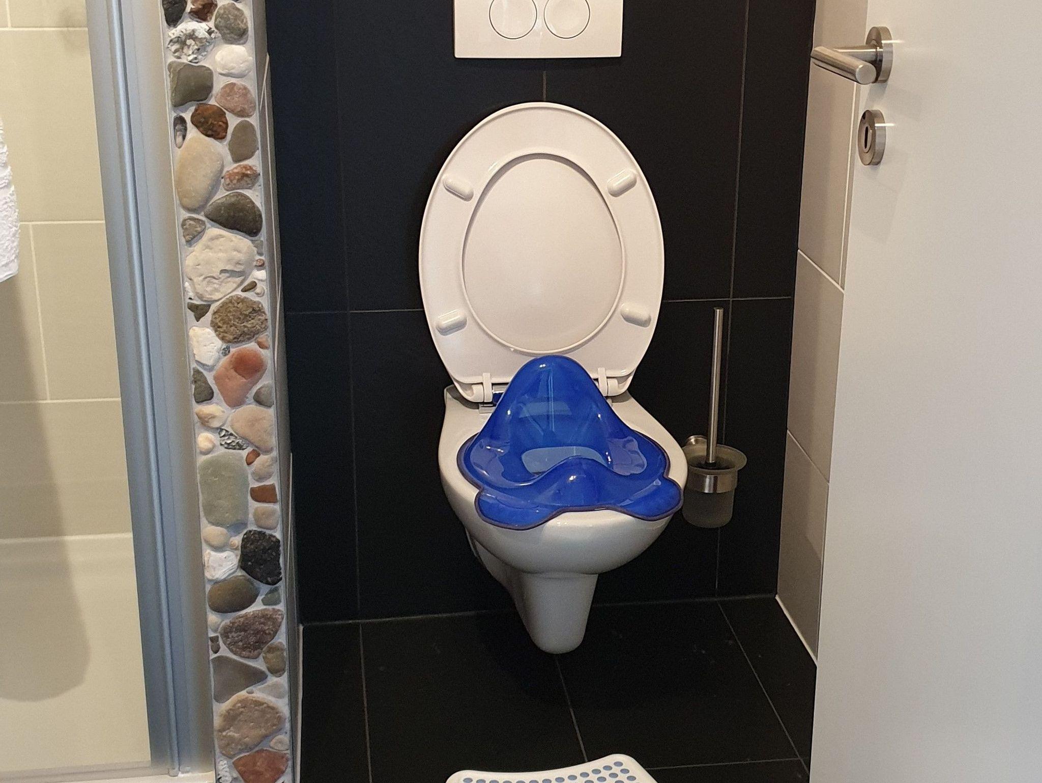 Ein Bad mit liebevoll gestalteter Dusche, WC, Waschbecken, Fön.