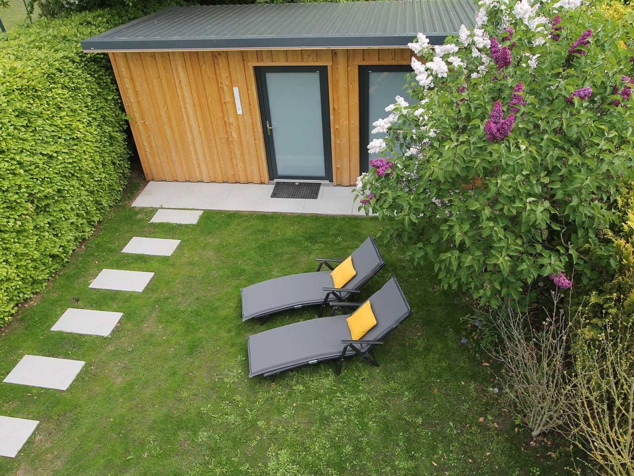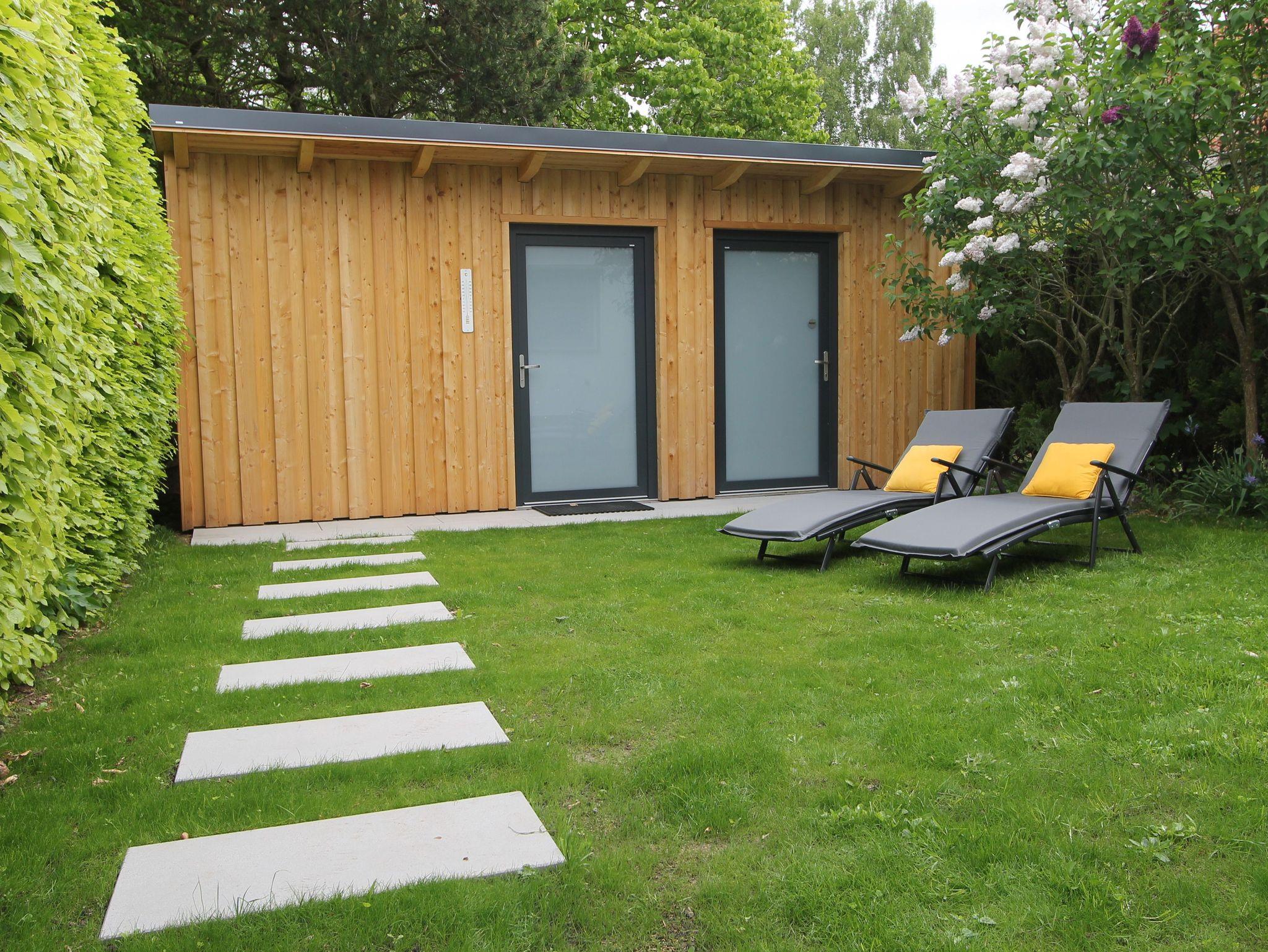Der PKW Stellplatz und Fahrradschuppen befinden sich direkt am Haus, dort lagern auch die Sonnenliegen, der der Elektrogrill und mehrere Wäschetrockenständer. Weiterhin befindet sich hinterm Haus eine kleine Sonnenwiese, durch die gute Lage ist sie sichtgeschützt. Dort können sie auch außerhalb des Strandes Sonnenstrahlen genießen!