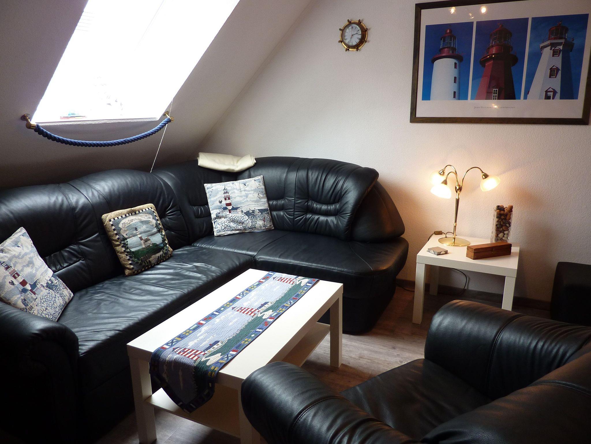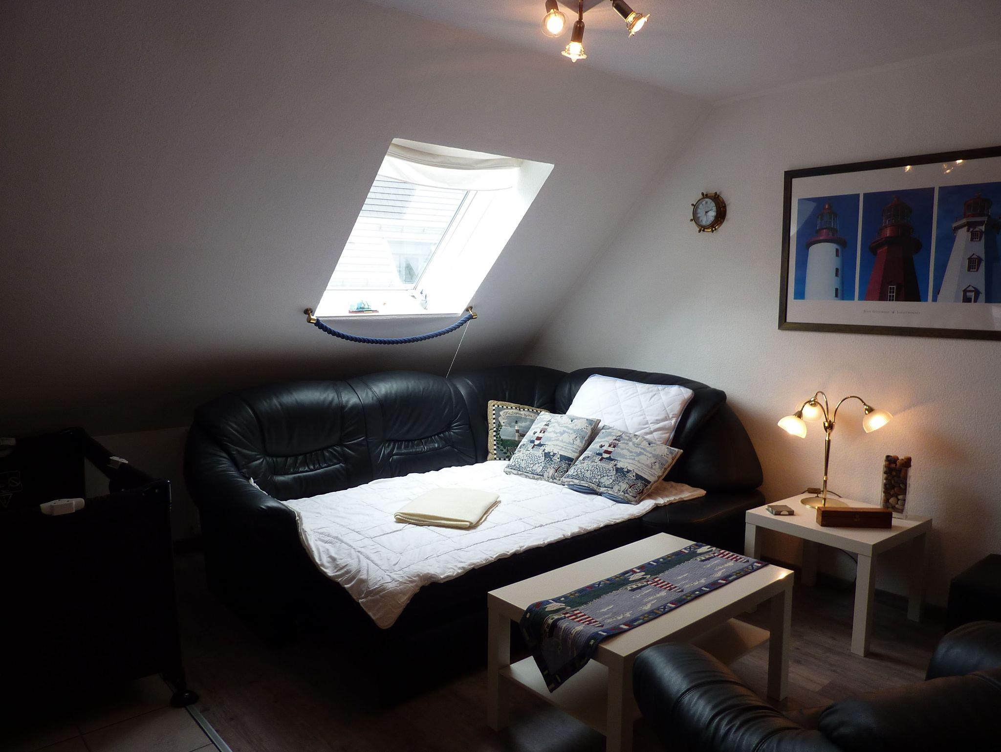 Die Ferienwohnung verfügt über eine Schlafgalerie mit 2 Betten im DG, offen zum Wohnraum, das Sofa im Wohnbereich ist als Schlafcouch jederzeit nutzbar. Des Weiteren finden Sie eine komplett ausgestattete Küchenzeile integriert im Wohnraum, einen Eßplatz für 4 Personen und ein Kinderbett und einen Hochstuhl. Ihr Auto parken Sie bequem auf dem Stellplatz des Grundstückes.