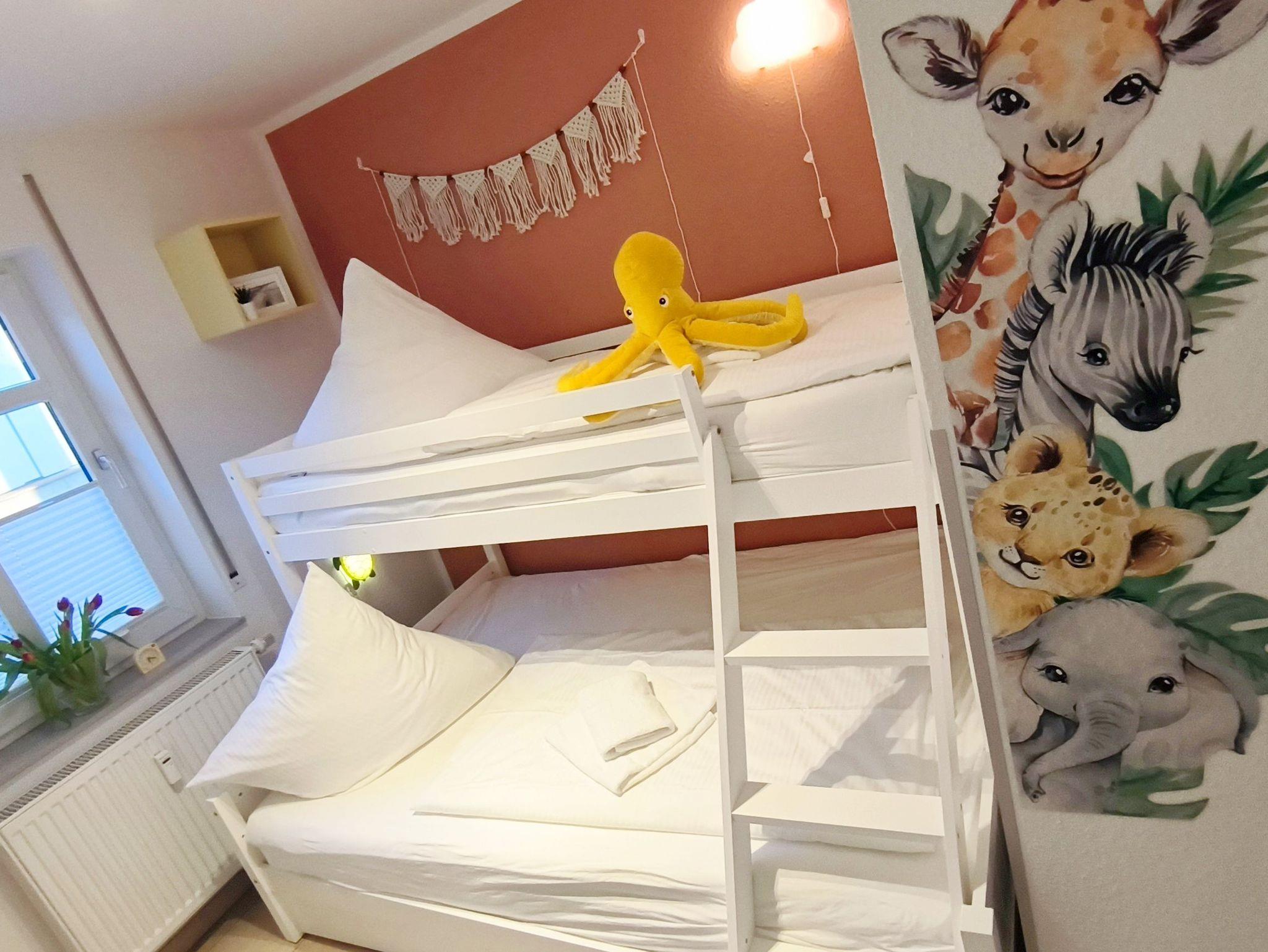 Sie bietet auf ca. 55qm Platz für 4 bis 5 Personen, wobei folgende Belegung vorgesehen ist: