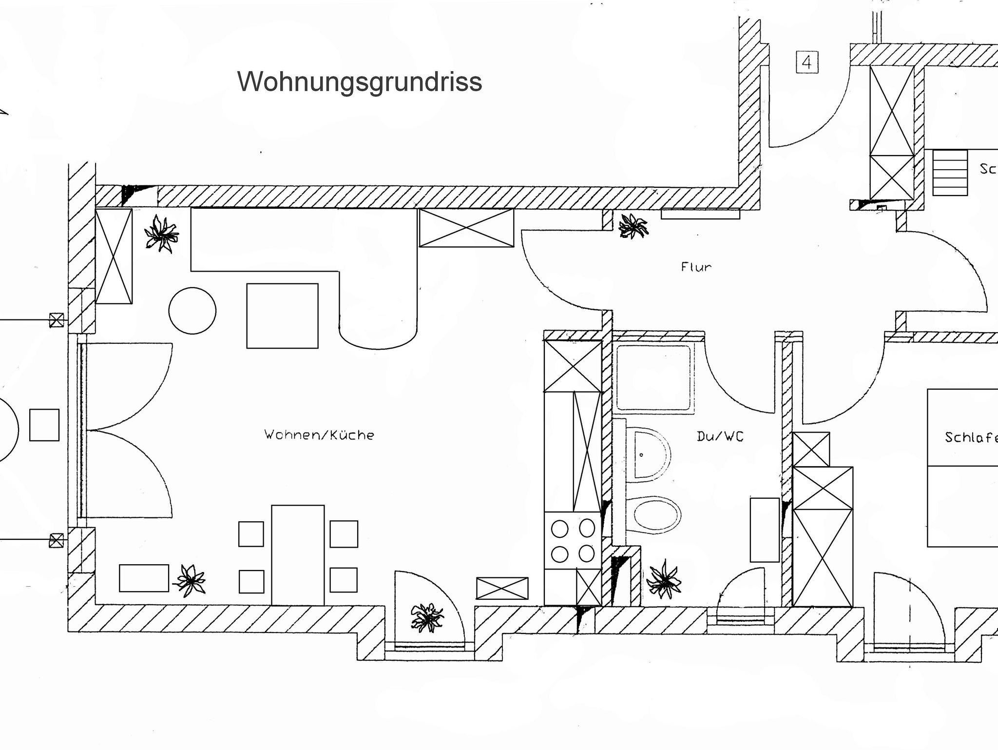 Die Wohnung ist für max. 4 Personen gut geeignet. Sie umfasst ein helles, sonniges Wohnzimmer mit integrierter Pantryküche, ein Schlafzimmer mit Doppelbett, ein Kinderzimmer mit Doppelstockbett, in dem auch Erwachsene reichlich Platz finden, sowie ein Bad mit Dusche und Fenster. An der Westseite mit Zugang vom Wohnzimmer befindet sich der Balkon. Alle Zimmer sind über einen geräumigen Korridor erreichbar.