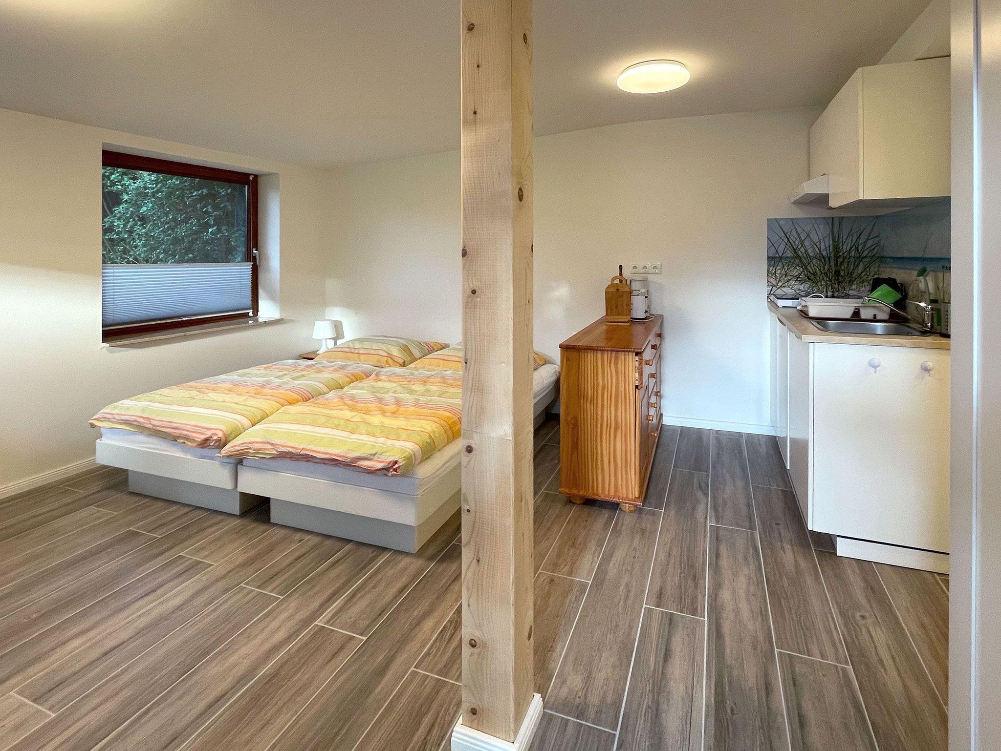 Unsere kleine helle Ferienwohnung für 1-2 Personen verfügt über: