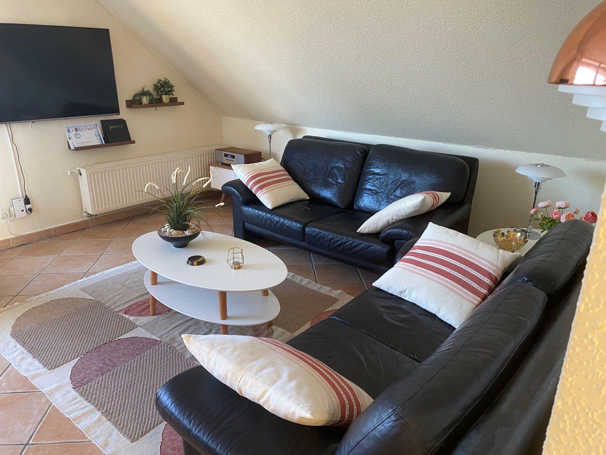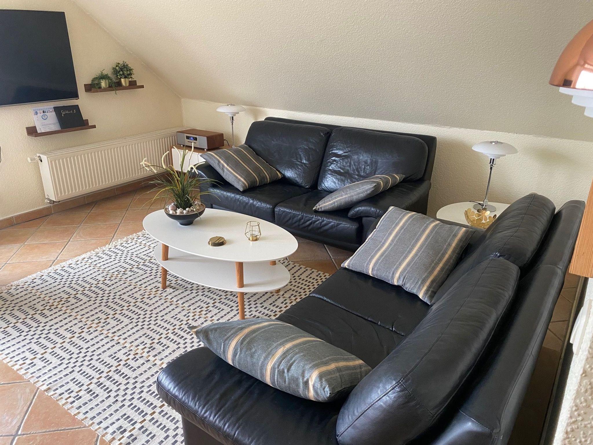 Als Highlight im Wohnzimmer steht Ihnen ein 55 Zoll Fernseher und eine Sonoro Musikanlage zur Verfügung. Des Weiteren bietet Ihnen die Wohnung zwei ruhige Schlafzimmer und ein helles Duschbad. Die Wohnung ist auf maximal 3 Personen ausgerichtet und befindet sich in der ersten Etage.