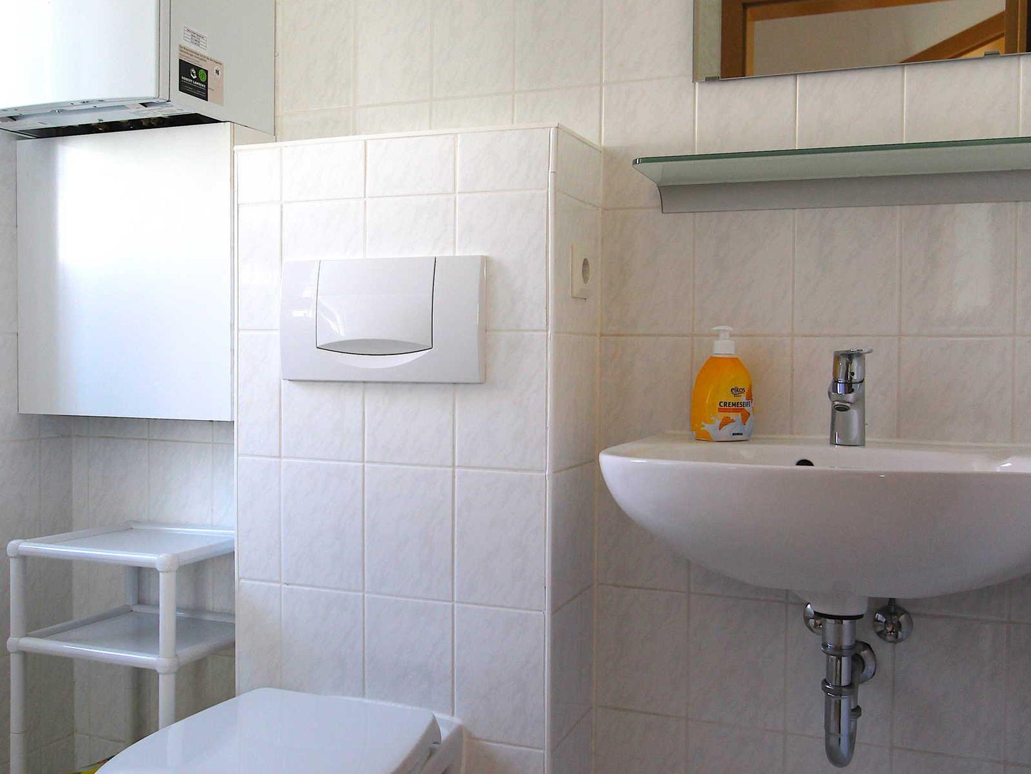 Ebenfalls im Obergeschoss befindet sich das Badezimmer mit Dusche und WC.
