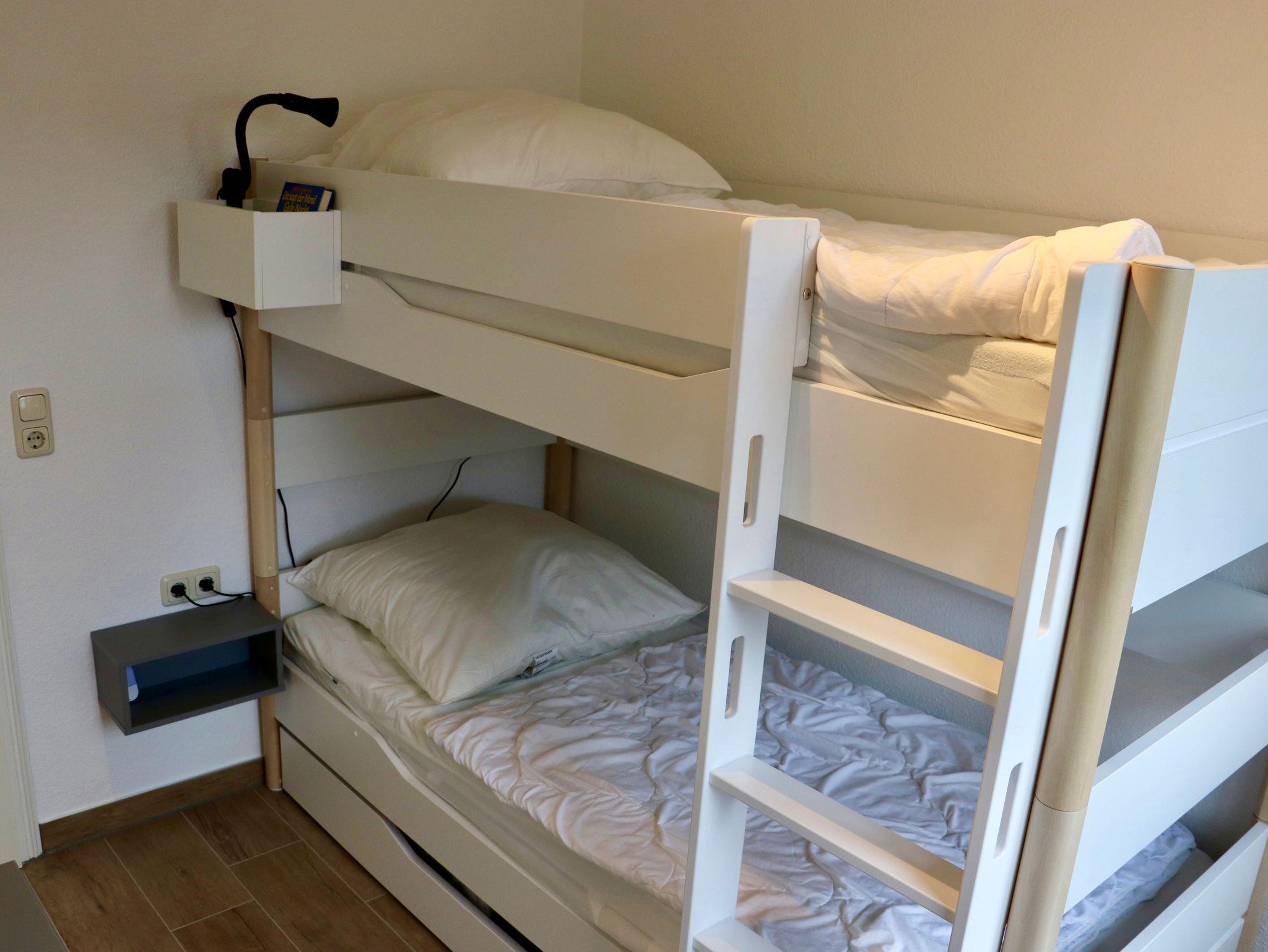 Die Wohnung umfasst ein Schlafzimmer mit einem Doppelbett (180 x 200 cm), ein Kinderzimmer mit einem Etagenbett sowie ein Duschbad. Für unsere kleinen Gäste stehen ein Kinderreisebett und ein Hochstuhl zur Verfügung. Ihr Fahrzeug können Sie bequem und kostenfrei in der Tiefgarage parken. Des Weiteren ist die Wohnung mit SAT-TV, Radio und kostenlosem WLAN ausgestattet.