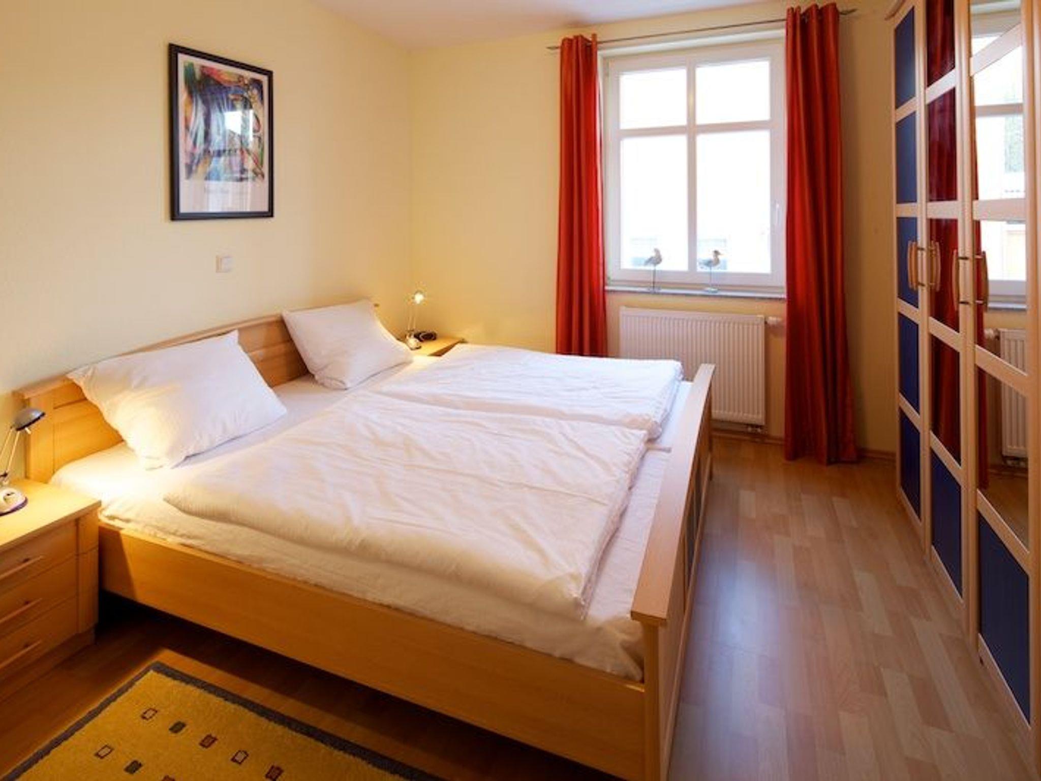 m Schlafzimmer mit Morgensonne gibt es ein Doppelbett und gr. Schrank. Das Bad ist mit Dusche und Fön ausgestattet.