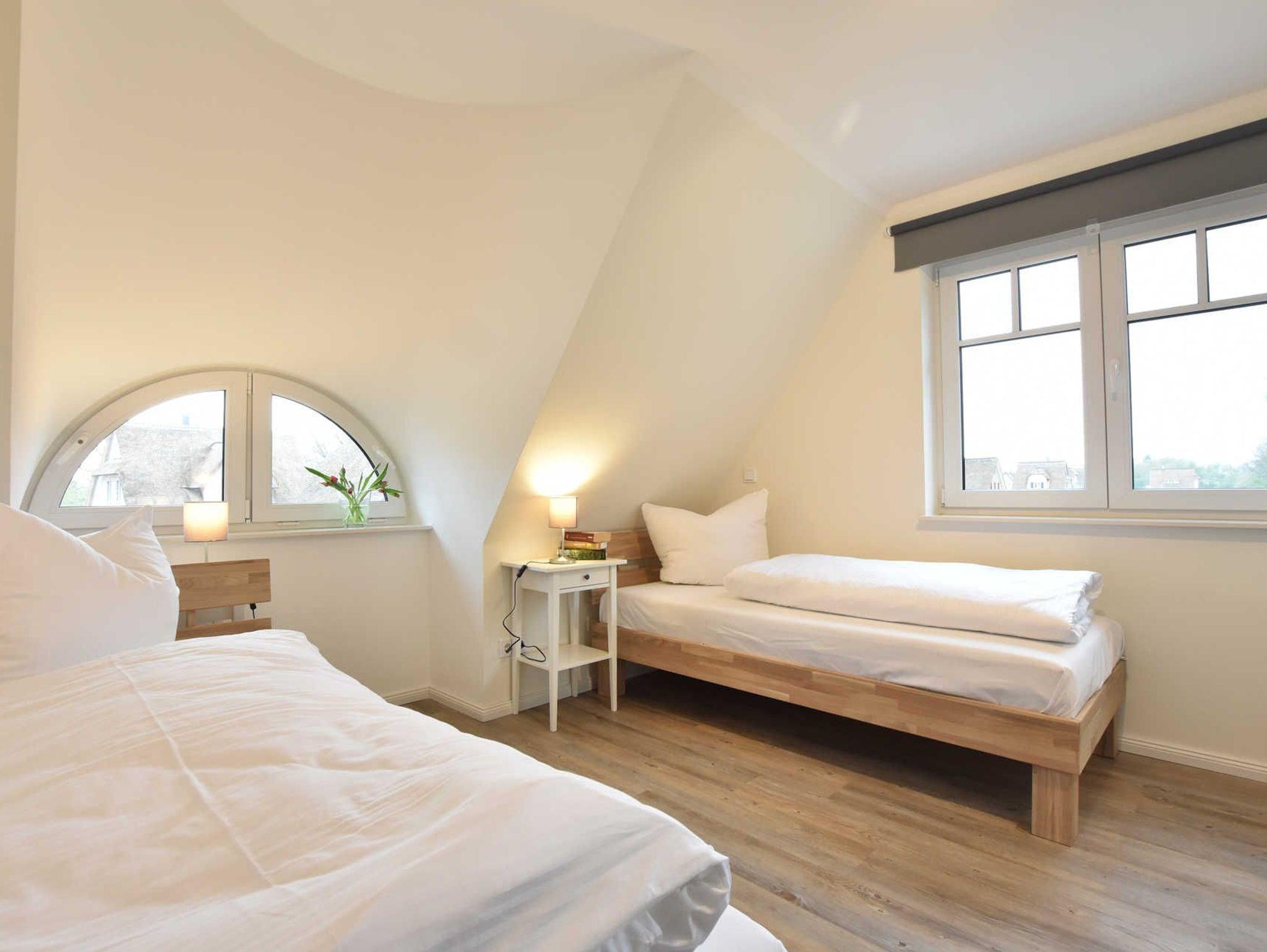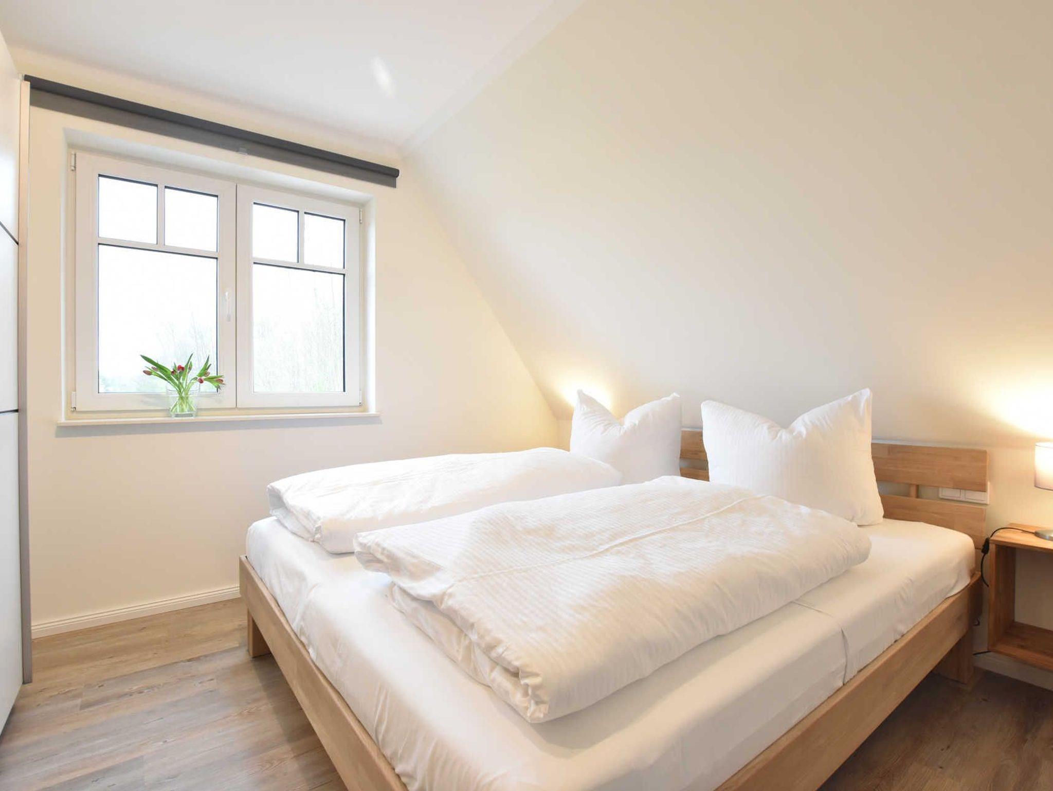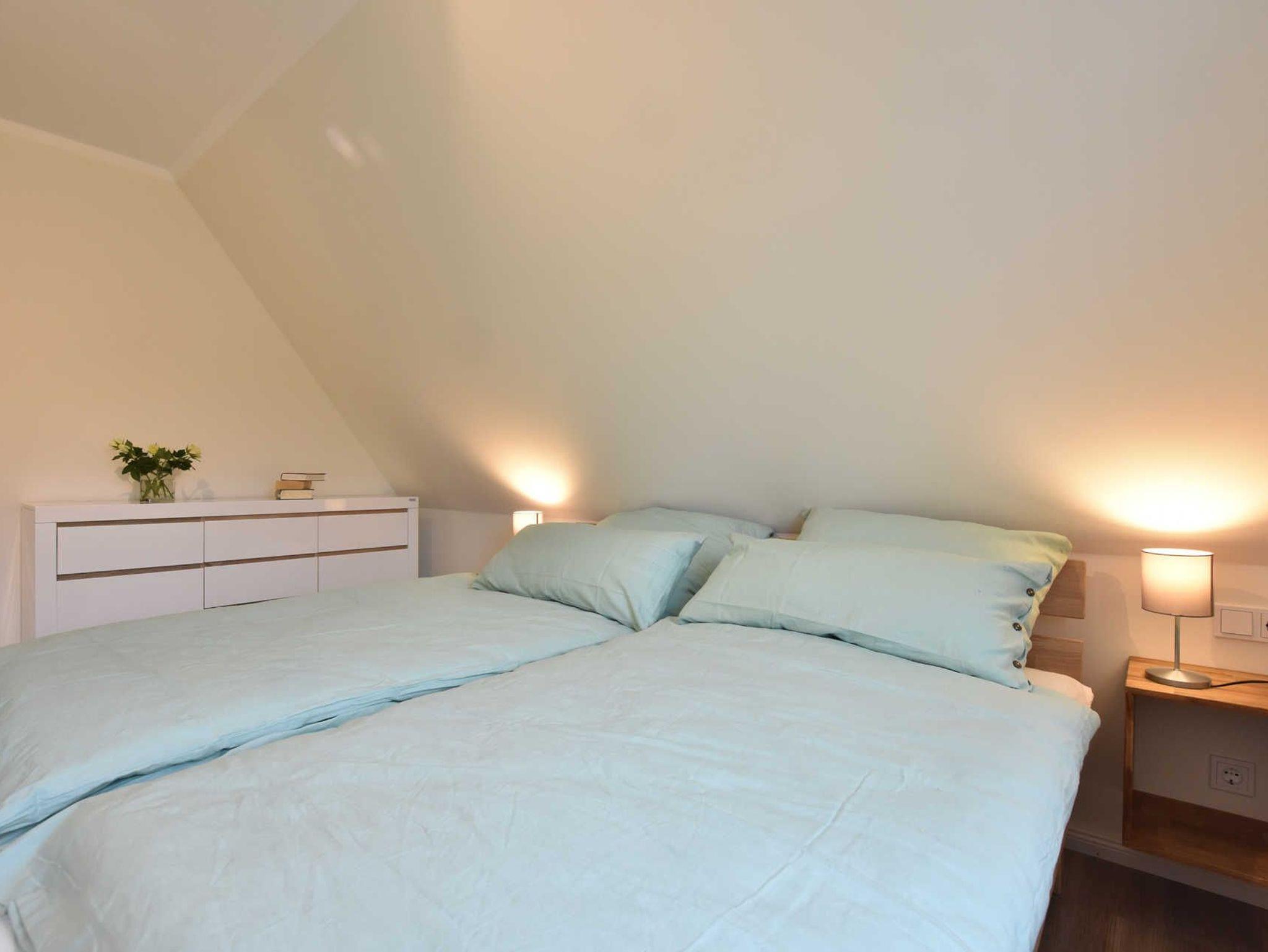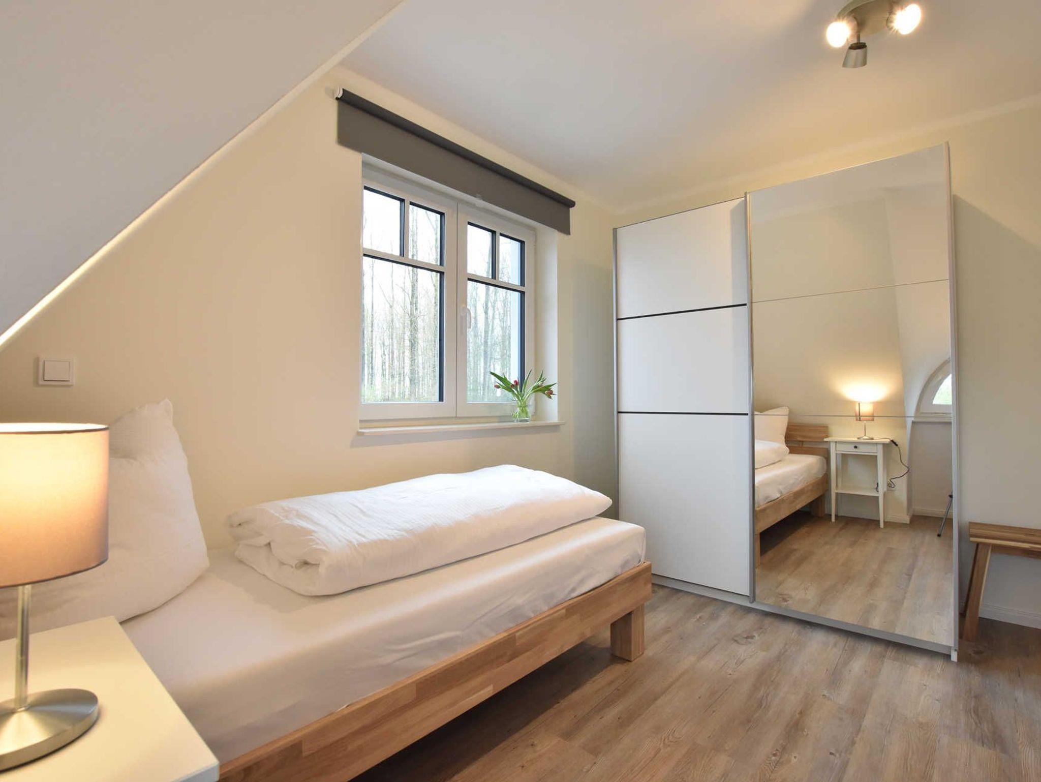 Im Obergeschoss insgesamt 5 Schlafräume, Babybett aufstellbar. Davon Schlafraum 2 und 3 mit Doppelbett & TV. Schlafraum 4 und 5 mit 2 Einzelbetten. Schlafraum 6 mit 1 Einzelbett.