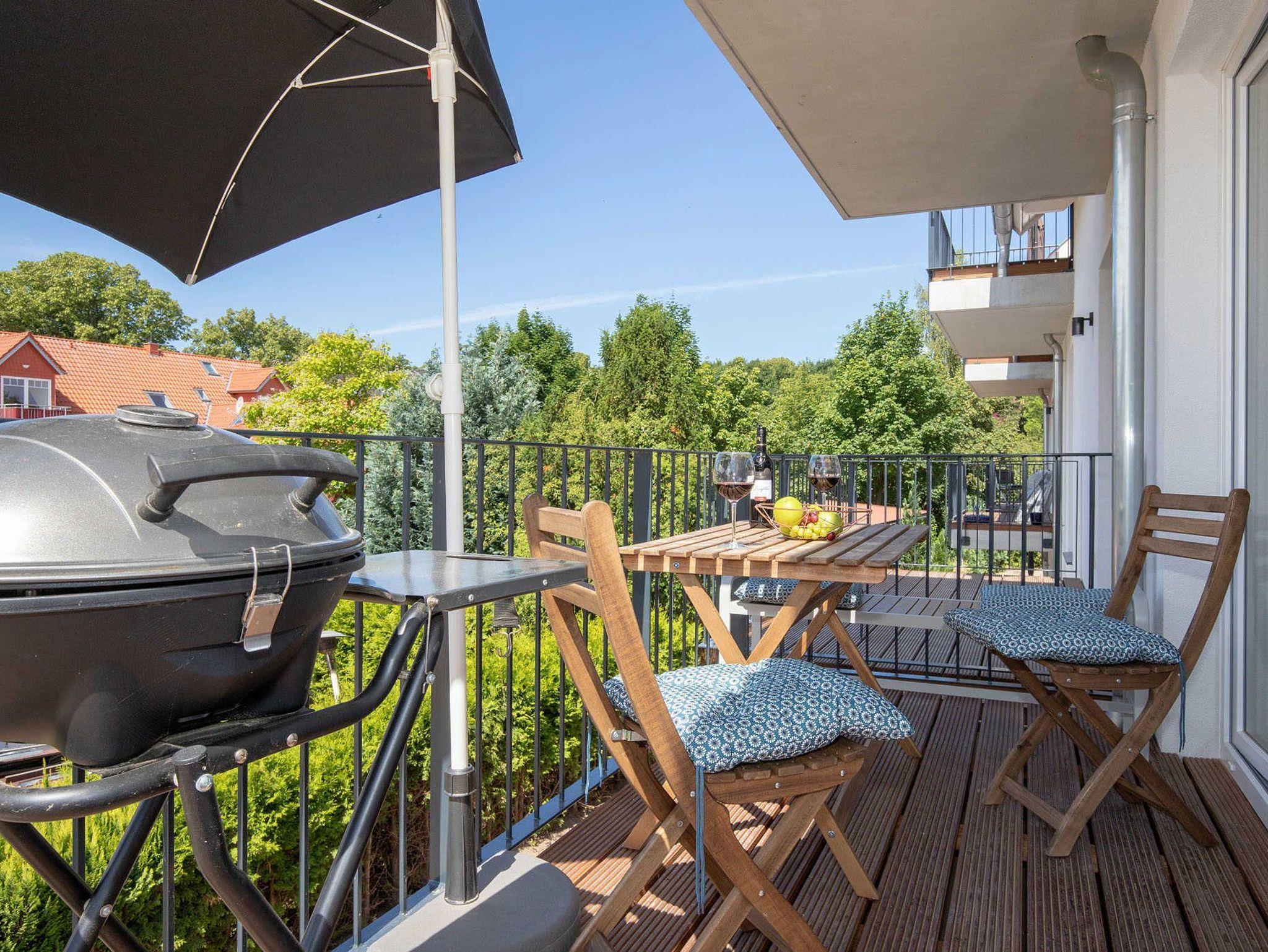 Auf dem schönen Balkon können finden Sie einen Elektrogrill.