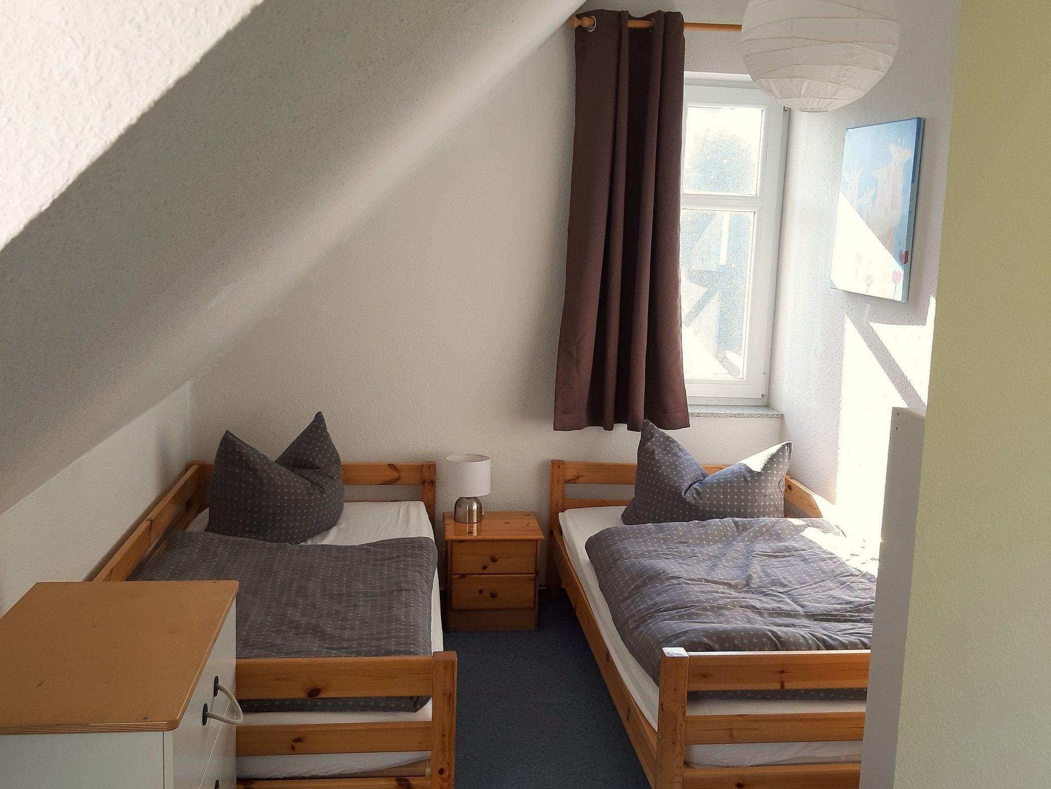 Die Ferienwohnung liegt im 2.OG und verfügt neben dem nach Süd-Osten und Nord-Westen ausgerichteten Wohn-Kochbereich mit Balkon und dem Schlafzimmer über einen weiteren abgeschlossenen Schlaf- u. ggf. Spielbereich in der Empore. Die Wohnung verfügt insgesamt über fünf Betten.