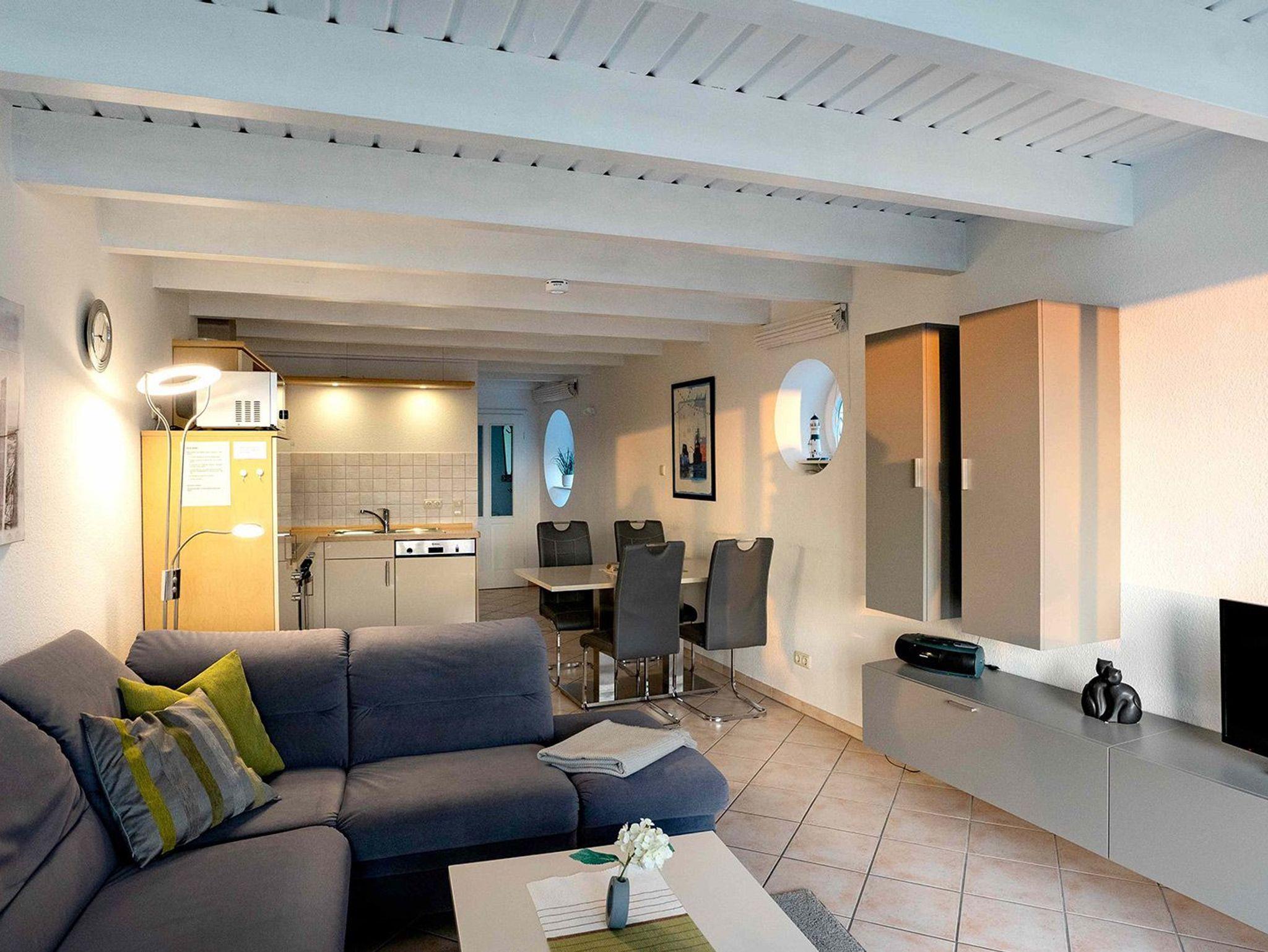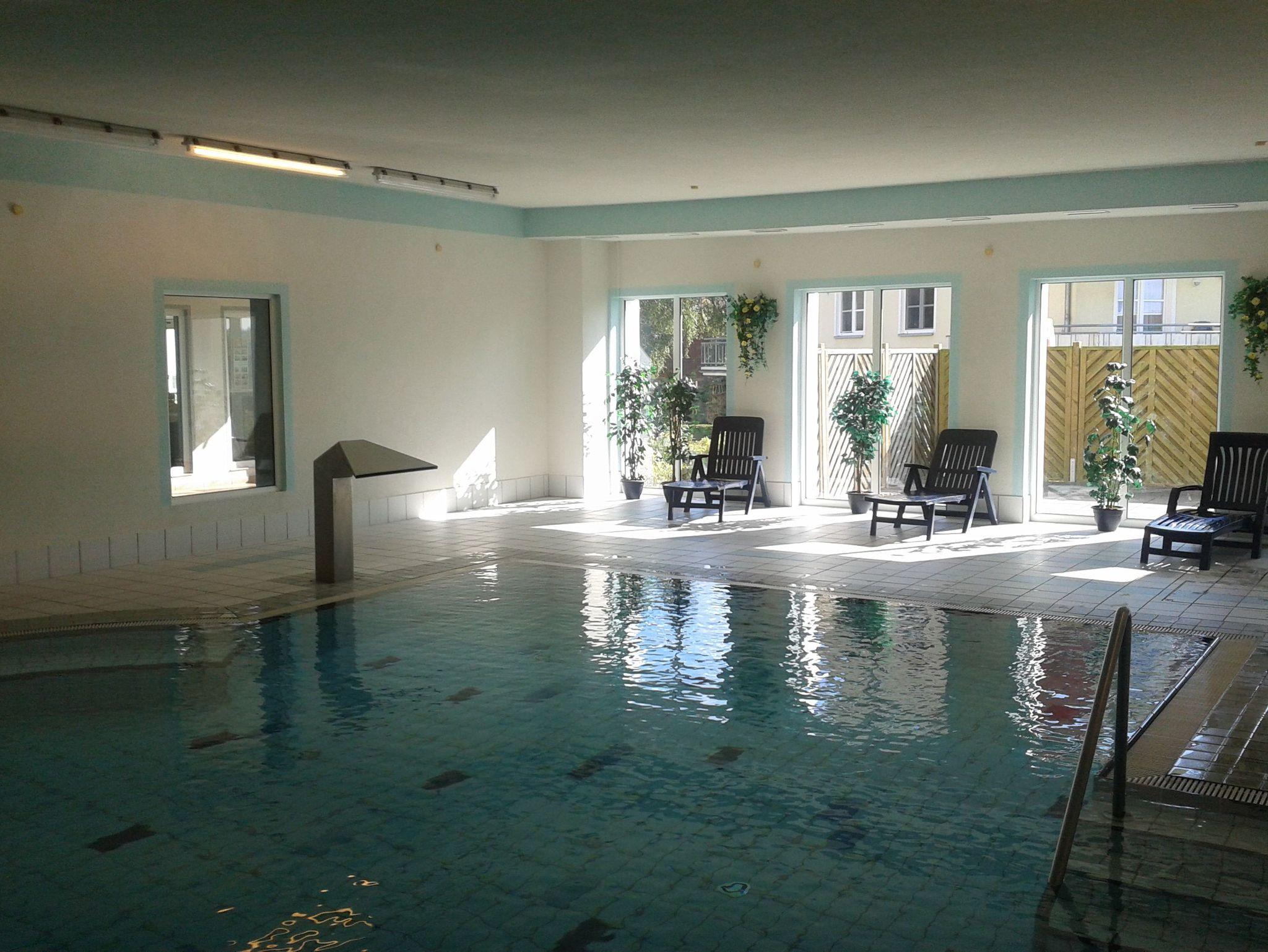 Ferienwohnung über 2 Ebenen mit 2 Schlafzimmern a 2 Betten, Wohnz.-Schlafcouch, 2 TV, Bettw. bitte mitbringen oder mieten (15,00 €/Pers.) Geschirrsp.u. Waschm .i.d. Whg., K-bett, K-stuhl, Terrasse, Balkon, Mikrowelle, keine Haustiere ,Schwimmbad (täglich geöffnet) und Sauna (Die., Fr., Sa.) i.Kurhaus inkl., Solarium gegen Gebühr nutzbar, DU/WC + Gäste-WC