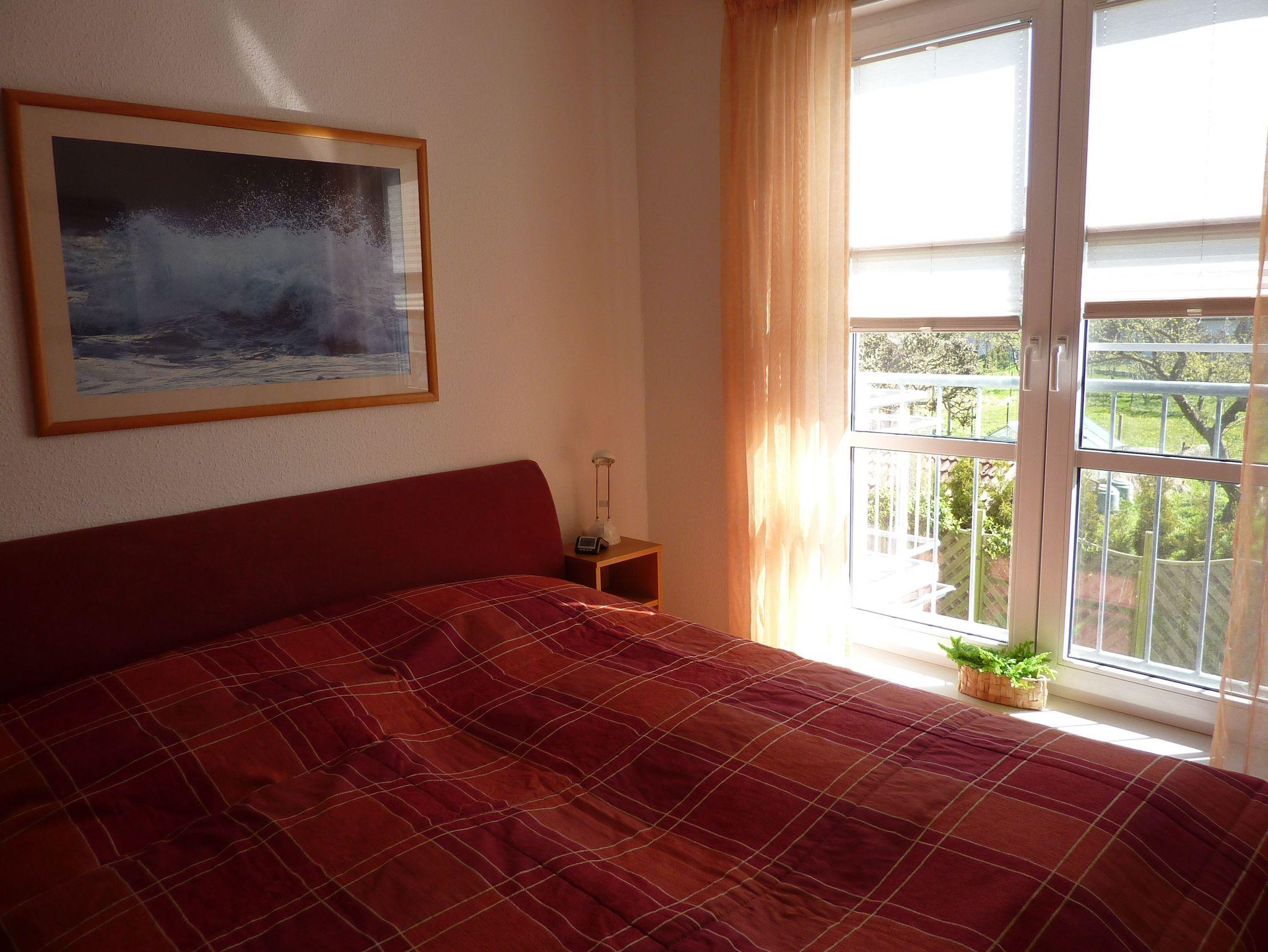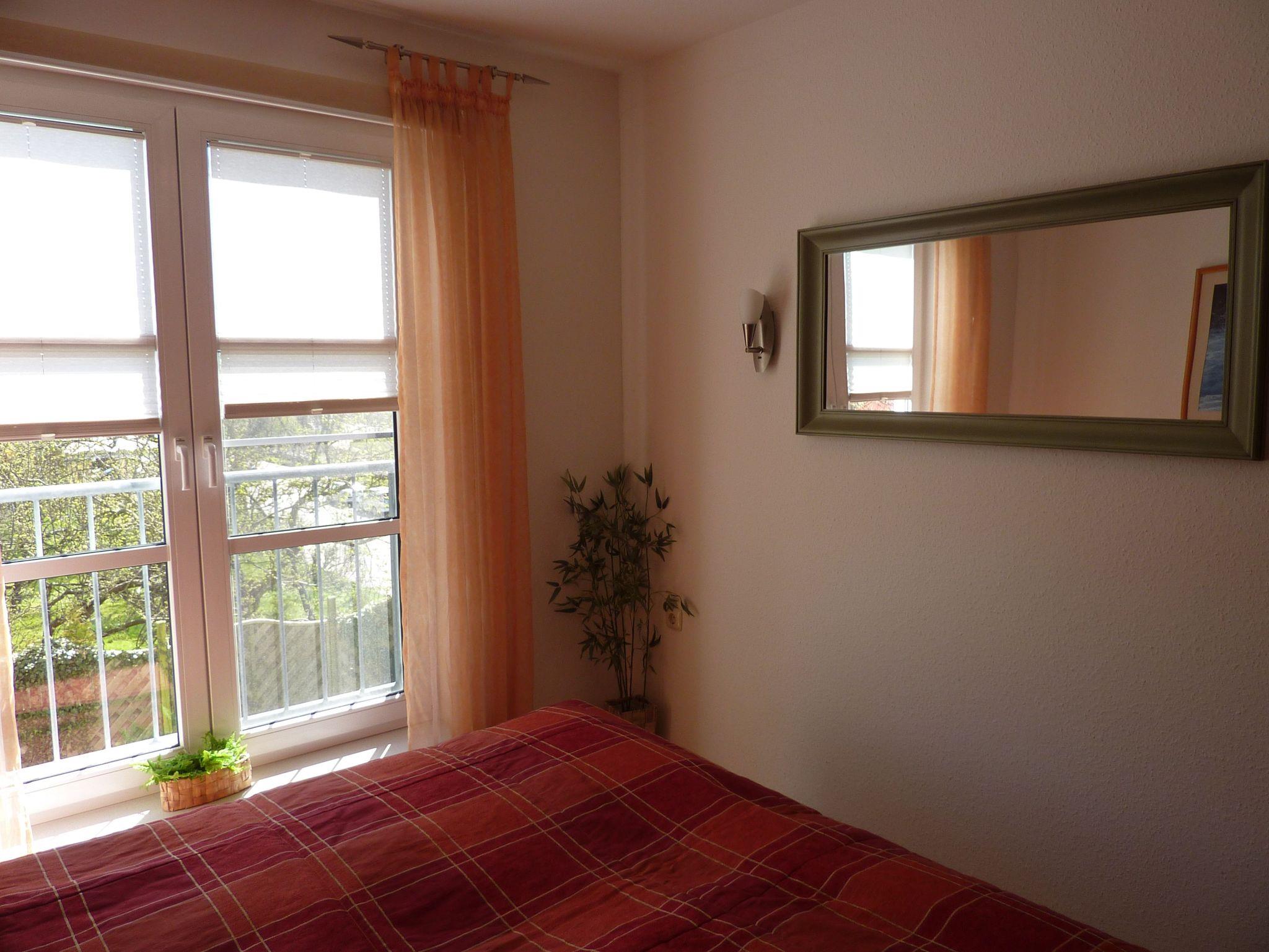 Die Wohnung teilt sich auf in zwei Schlafzimmer - 1 x Doppelbett u. 1 x Kinderzimmer Doppelstockbett, Wohnzimmer mit integrierter Küchenzeile, DU/WC. Wäschepaket ist mietbar - 20,.00 Euro/Person. Zur Anlage gehören ein Schwimmbad, Sauna, Solarium und Tiefgarage. Vom Balkon der Wohnung hat man einen traumhaften Blick auf Salzhaff und Ostsee.