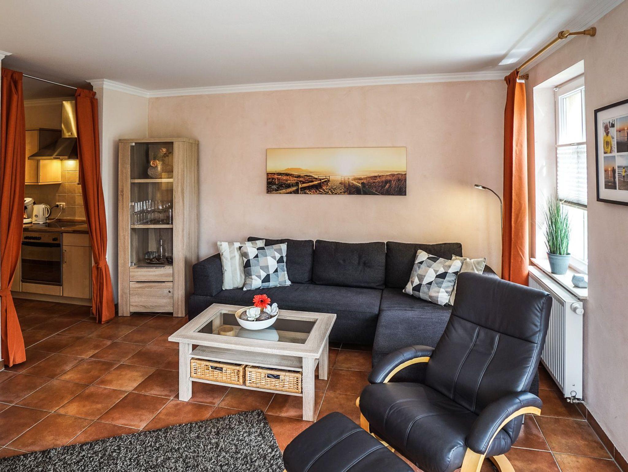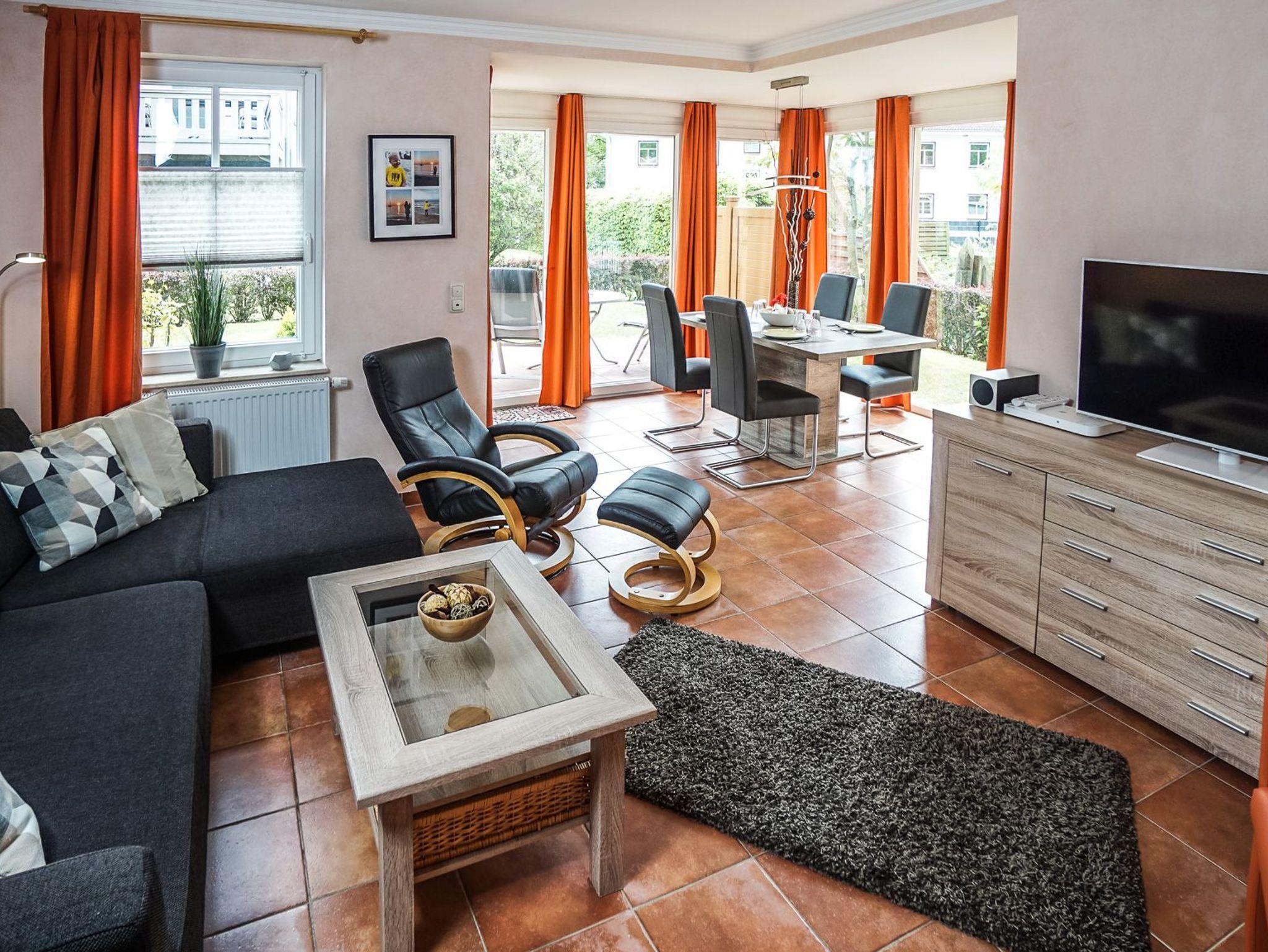 Die Wohnung befindet sich im Erdgeschoss und verfügt über zwei Schlafzimmer, ein Wohnzimmer mit Essbereich, eine voll ausgestattete Küche, ein Bad mit ebenerdiger Dusche sowie ein Gäste-WC. Ferner ist eine Sonnenterrasse mit Rasennutzung sowie ein kostenfreier Pkw-Stellplatz vorhanden. Es gibt in der Wohnanlage einen abschließbaren Fahrradraum sowie Waschmaschine und Trockner mit Münzbetrieb. Rauchen und der Aufenthalt von Haustieren ist in unserer Ferienwohnung nicht gestattet!