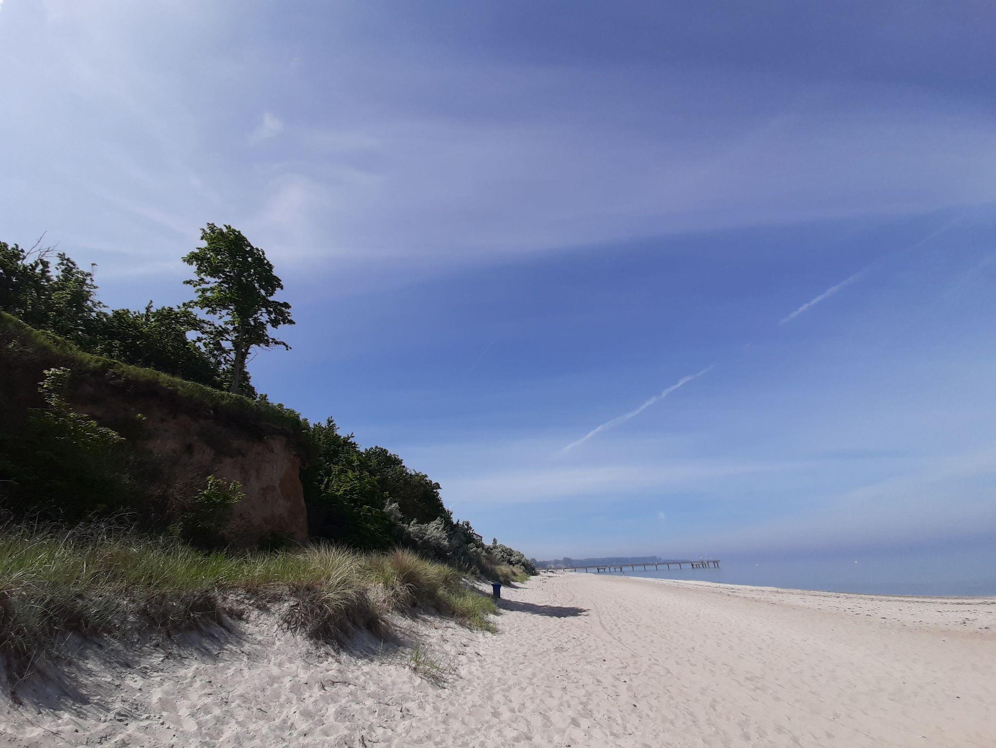 In 150 m Entfernung liegt der gepflegte Ostseestrand mit Strandkörben und einer Seebrücke.