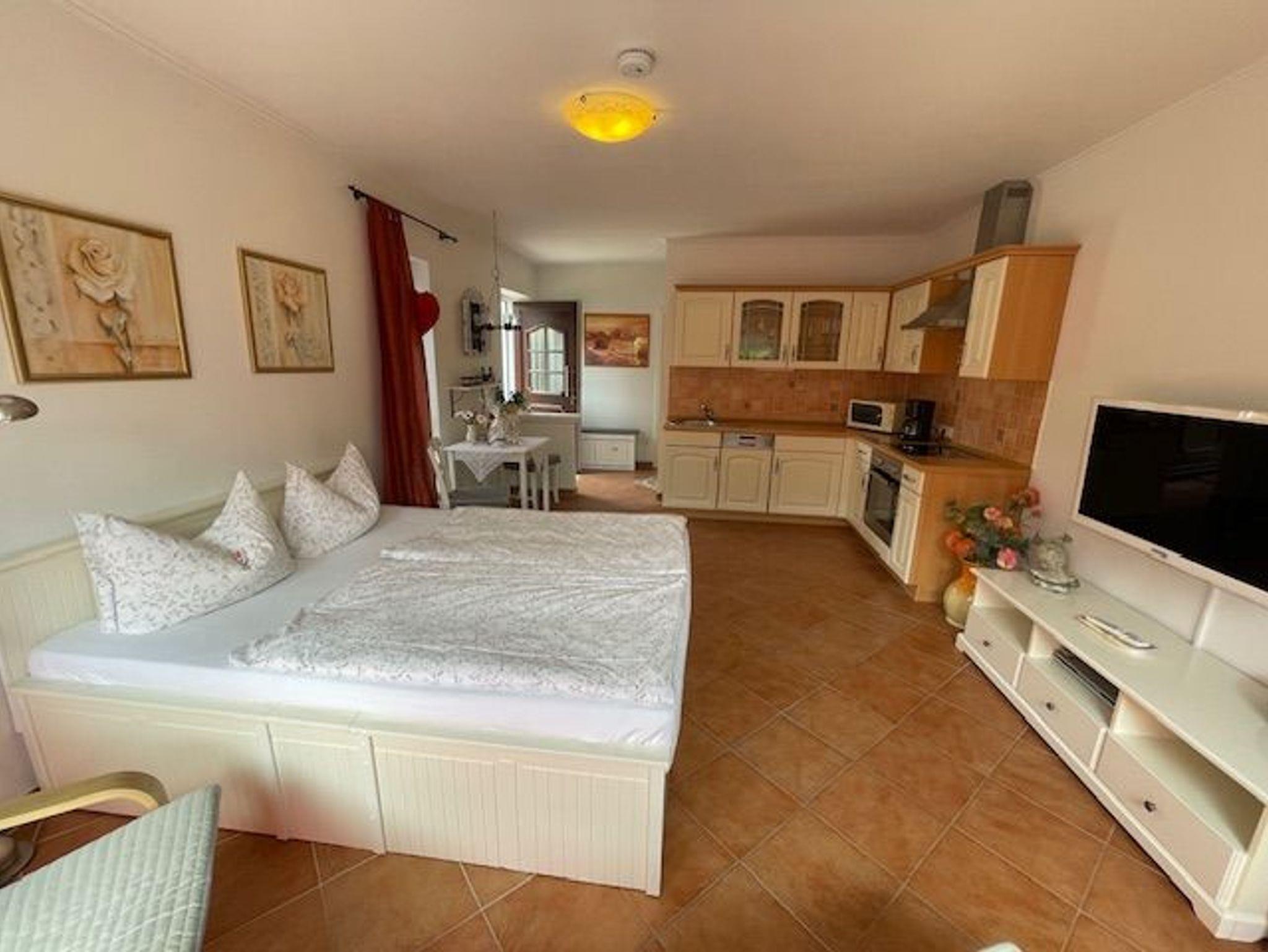 Die Ferienwohnung ist ein Apartment auf unserem Grundstück (Anbau), ist ca. 45 m groß, hell und freundlich, gemütlich mediterran eingerichtet und für 2 Personen geeignet.