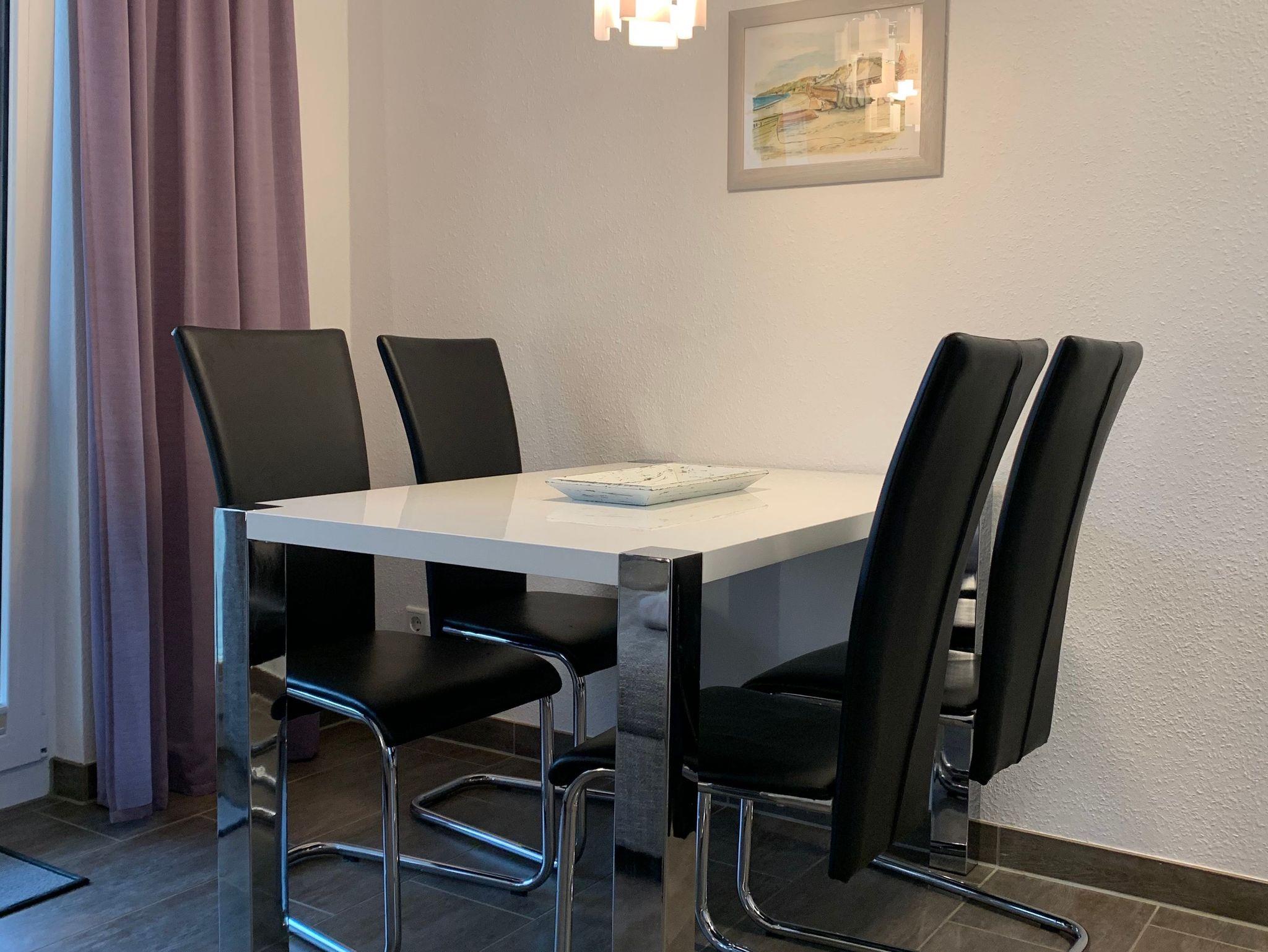 Die Ferienwohnung ist optimal geeignet für 4 Gäste + Baby auf einer Wohnfläche von 52m². Sie ist ausgestattet mit Fußbodenheizung, Wohn-Esszimmer mit voll ausgestatteterKüchenzeile, 2 Schlafzimmer, Abstellraum mit Waschmaschine (kostenfrei)