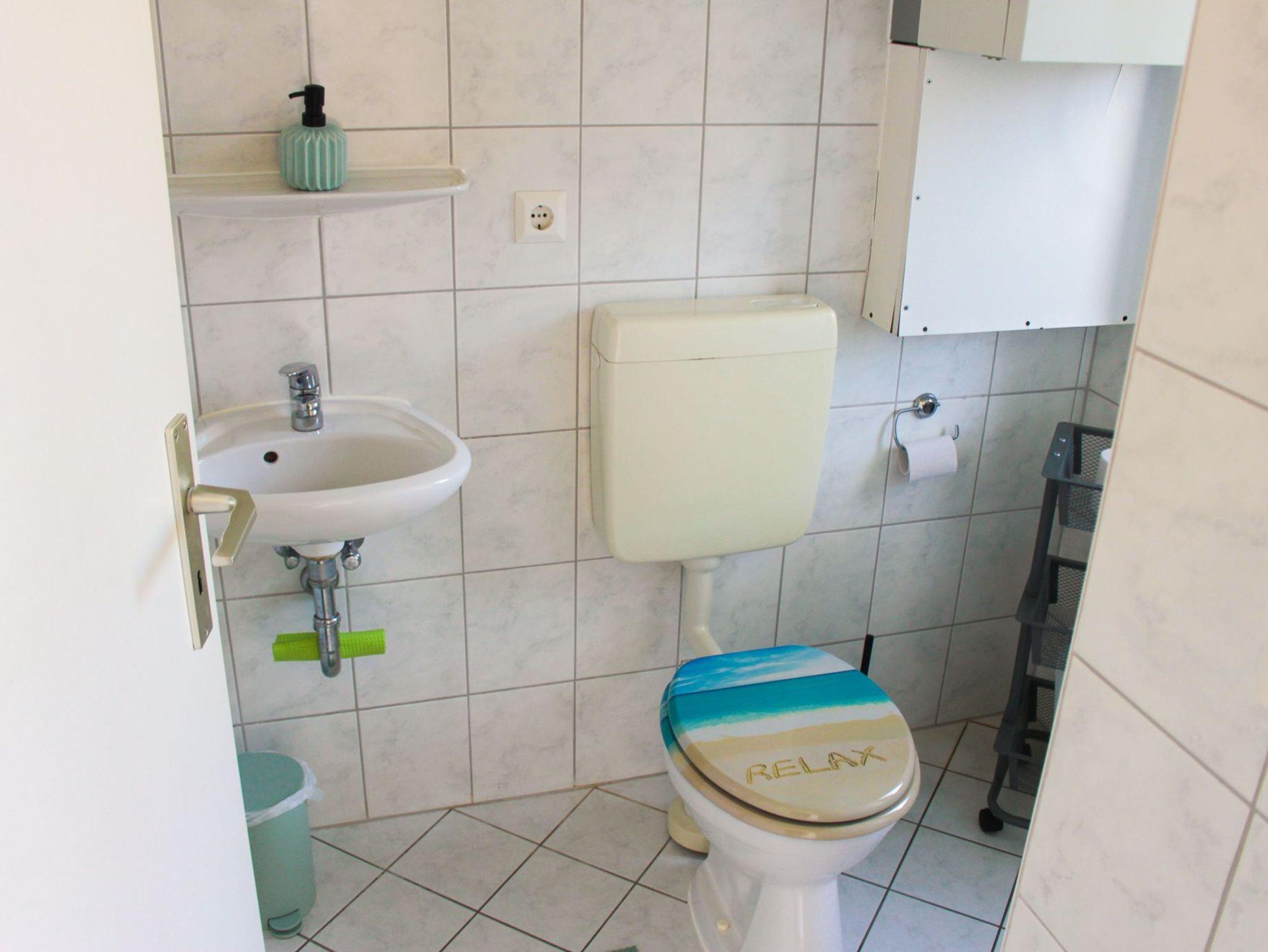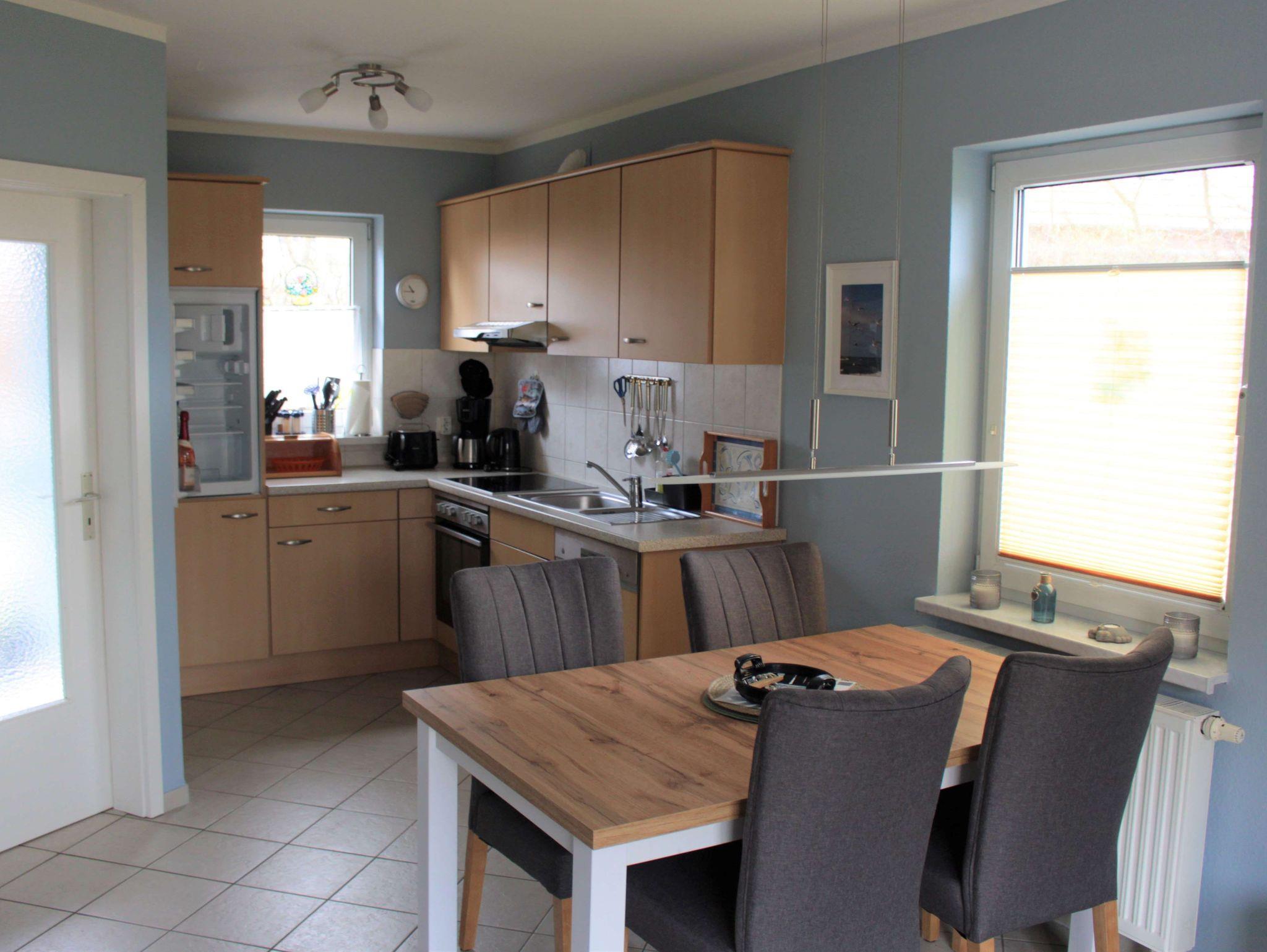 Im Erdgeschoss gibt es einen schönen Wohnbereich mit einer voll ausgestatten offenen Küche, sowei ein Gäste-WC.