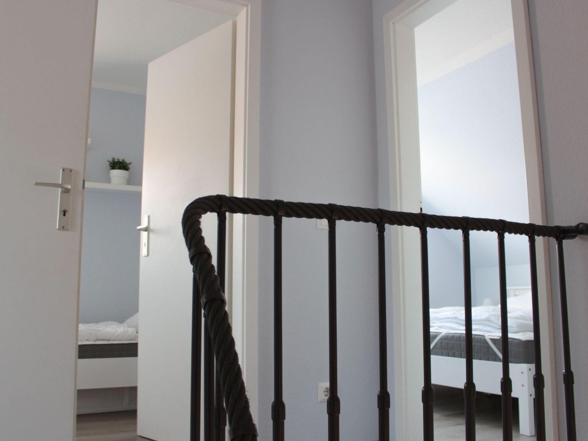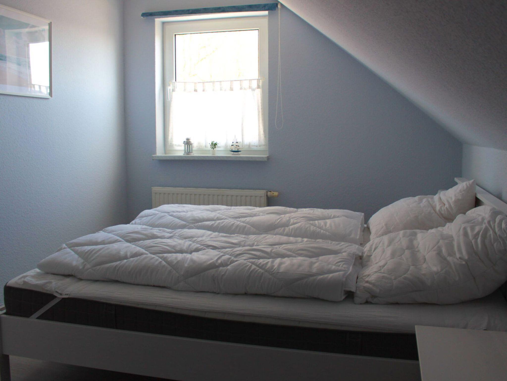 In dem Ferienhaus Ferienglück, gibt es zwei Schlafzimmer mit einem Doppelbett ( 180x200 cm) und zwei Einzelbetten (90x200 cm), im OG befindet sich ein Badezimmer mit Dusche und WC.
