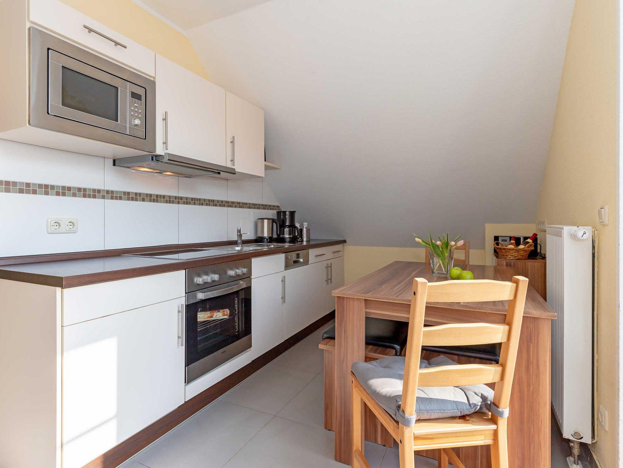 Die effizient gestaltete Maisonette-Wohnung verfügt über insgesamt 4 Zimmer. An das Wohnzimmer grenzt eine offene Wohn-Essküche und ein Süd- Balkon mit Sitzgelegenheiten. Des Weiteren befinden sich im Erdgeschoss zwei Schlafzimmern, wovon eines mit einem Doppelbett und das andere mit einem Etagenbett ausgestattet ist, sowie ein Duschbad mit Waschtisch, WC und Sprossenheizkörper als Handtuchhalter. Im Obergeschoss befinden sich ein weiteres Schlafzimmer mit Doppelbett, ein Duschbad sowie Sauna (gegen Aufpreis) . Ein Auto- Stellplatz und ein abgeschlossener Schuppen steht Ihnen ebenfalls zur Verfügung. Rerik ist ein kleines, sehr beliebtes Ostseebad zwischen Wismar und Rostock, umgeben von Wasser und Natur. Yachthafen, Steilküste, Wander-/Fahrradtouren sind nur einige Highlights des Ortes. Die einmalige Lage zwischen Ostsee und Salzhaff zeichnen das Ostseebad aus. Die Wohnung befindet sich ca. 350 m vom Strand entfernt. Einkaufsmöglichkeiten und Gastronomie sind in unmittelbarer Nähe.