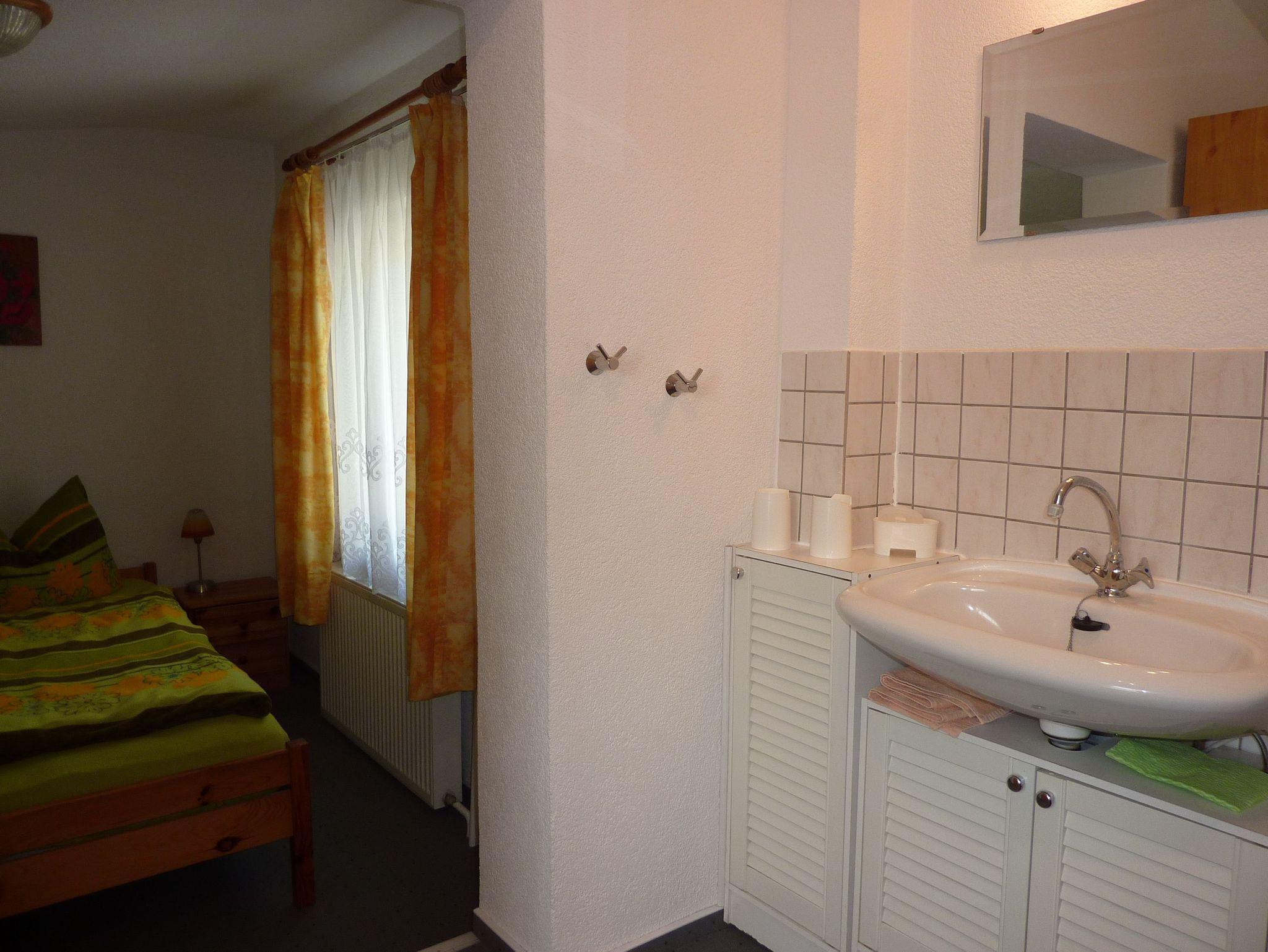 Dusche und Waschgelegeneheit im Schlafzimmer 1 sowie Waschgelegenheit in Schlafzimmer 2.