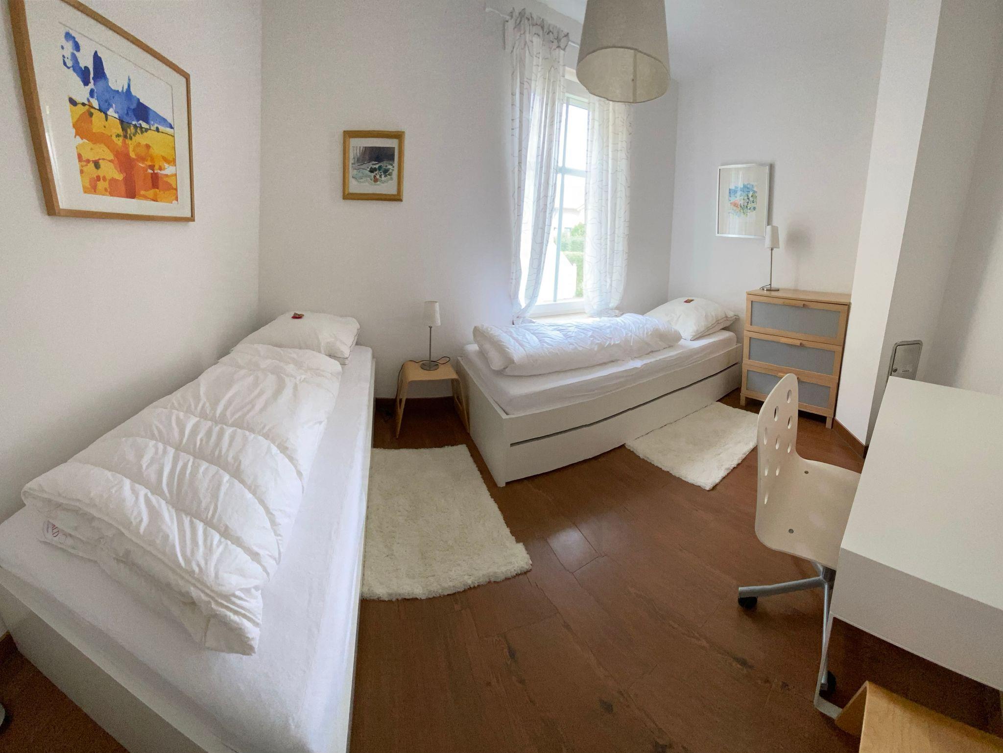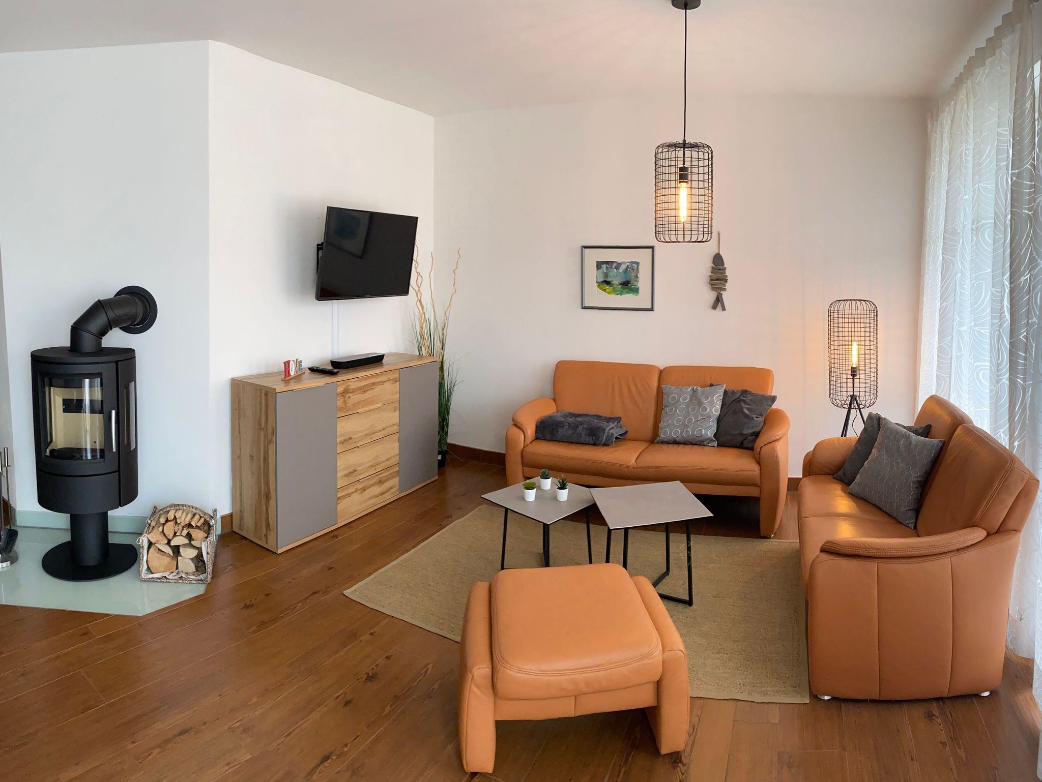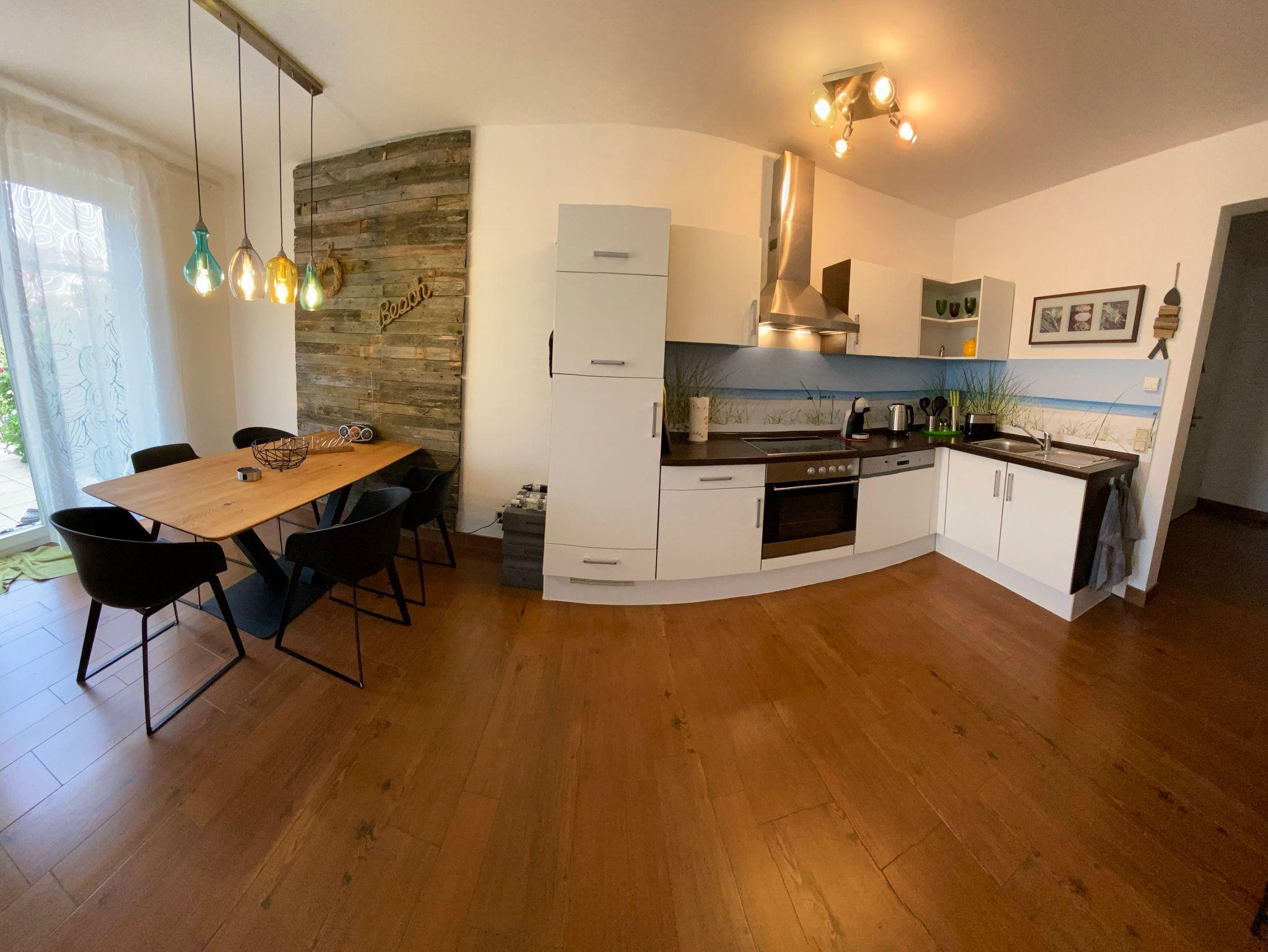 Unsere im Mai 2020 neu gestaltete und renovierte Ferienwohnung im Erdgeschoss eines 4 Appartementhauses ist mit einer Größe von 75m² ideal für bis zu 4 Erwachsene und 1 Kleinkind. Die Wohnung verfügt über einen separaten Hauseingang, über 2 getrennte Schlafzimmer (1 komfortables Doppelbett und 2 Einzelbetten, erweiterbar auf 3 Einzelbetten). Alle Fenster können durch Rollläden abgedunkelt werden. Das renovierte Badezimmer bietet Ihnen eine große Dusche, Badewanne und eigene Waschmaschine. Die moderne Küche ist komplett ausgestattet und geht über in einen offenen Wohn- und Essbereich mit exklusiver Sitzgelegenheit und Satelliten TV. Über den Wohnbereich gelangen Sie auf die große Sonnenterrasse. Die Entfernung zum Salzhaff und der Ostsee beträgt nur 200 m. Die Wohnung verfügt über einen eigenen Carport Stellplatz. Die komplette Ferienwohnung ist mit einer Fußbodenheizung ausgestattet. Ein moderner Kaminofen sorgt auch an verregneten Tagen oder im Weihnachtsurlaub für wohlige Atmosphäre. Bitte haben Sie Verständnis dafür, dass in unserer Wohnung keine Haustiere erlaubt sind. Im Wäschepaket/Person enthalten sind: Bettwäsche, 1 Duschtuch und 2 Handtücher. Unser Elternschlafzimmer haben wir im März 2021 neu ausgestattet. Im Sommer 2021 folgte die Terasse mit moderner Sitzmoglichkeit und neuer Bepflanzung.