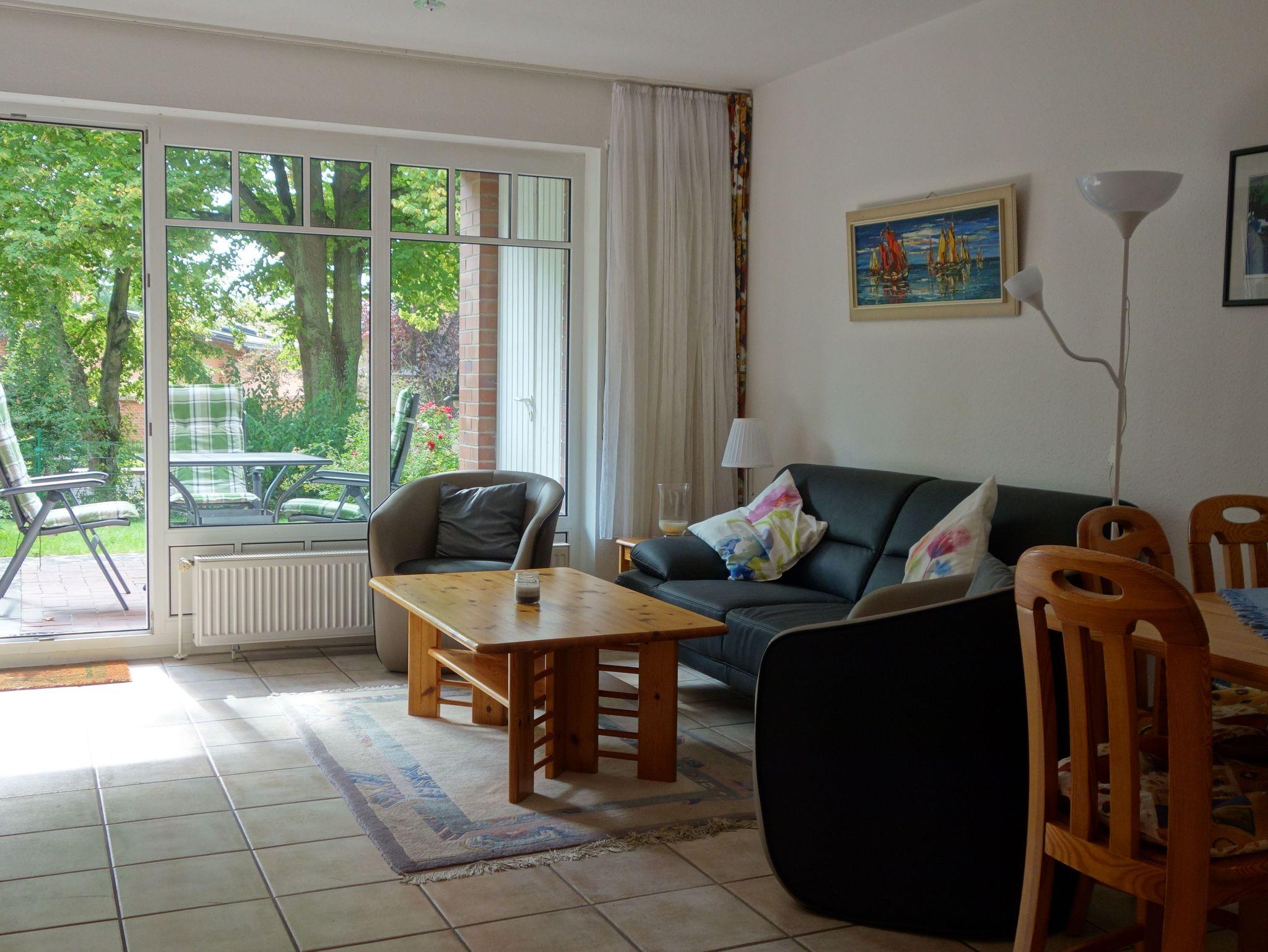 3-Zimmer Komfort-Ferienwohnung 63qm im Erdgeschoß mit Terrasse zur Südseite (mit Tisch und Stühlen), 1 gr. EWZ mit komplett eingerichteter Küche, 1 Schlafz. mit Doppelbett, 1 Schlafzimmer mit 2 Einzelbetten, 1 DU/WC, 1 WC, Kinderbett und -hochstuhl, eigenes kostenfreies WLAN. Damit Sie es sich richtig gutgehen lassen können, haben wir die Betten bezogen und Ihnen Handtücher hingelegt.